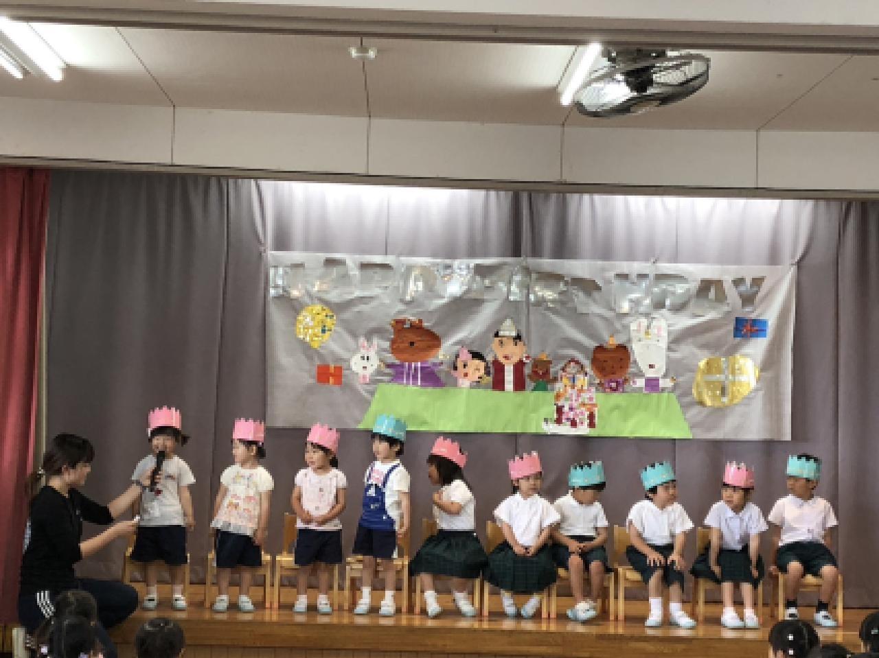 2歳児教室のひよこ組さんは、5月からの登園だったので、4月生まれのお友達も一緒にお祝いしました。