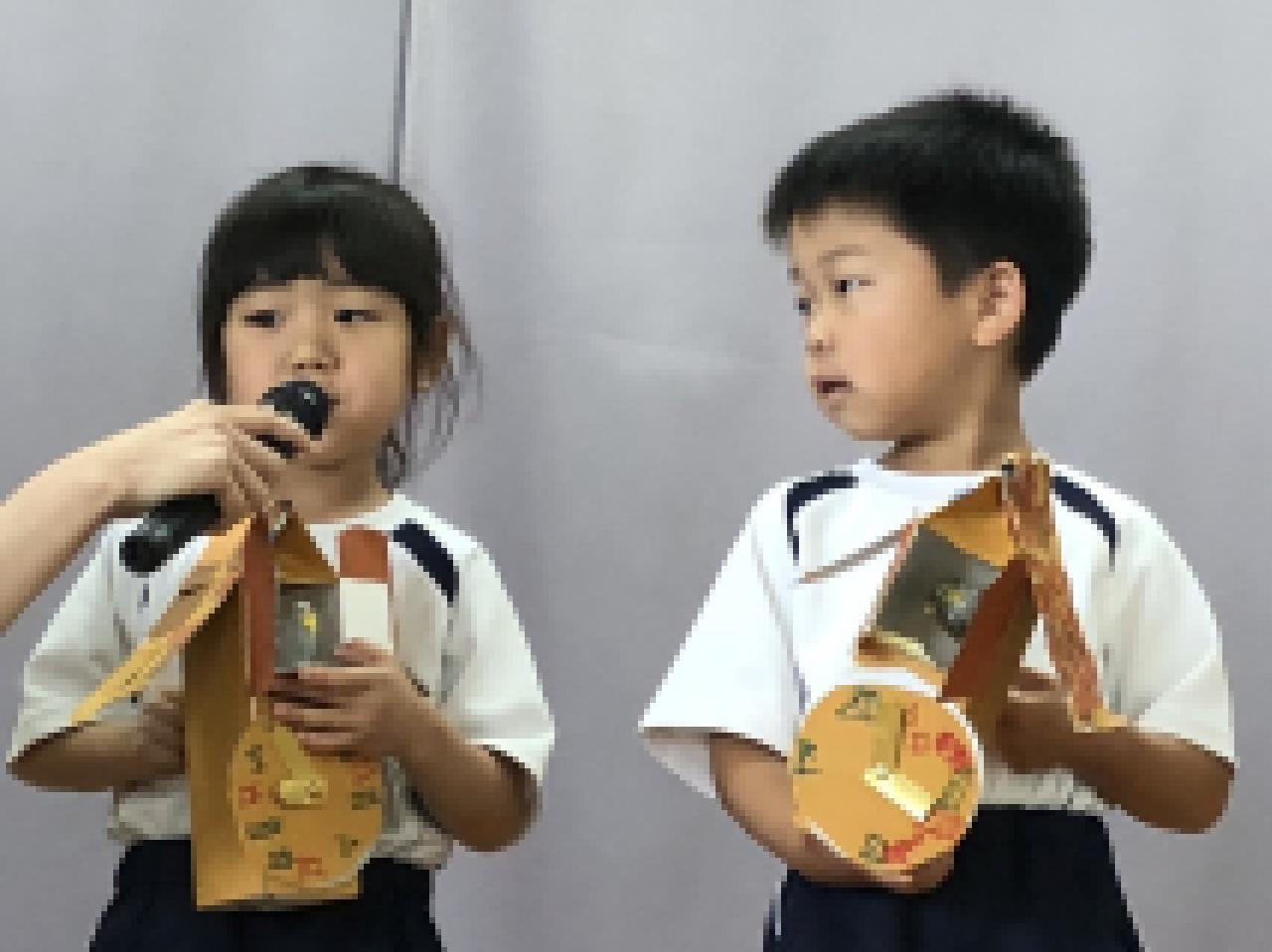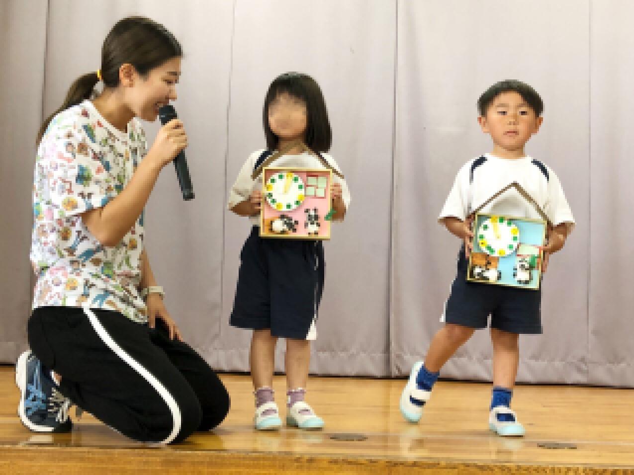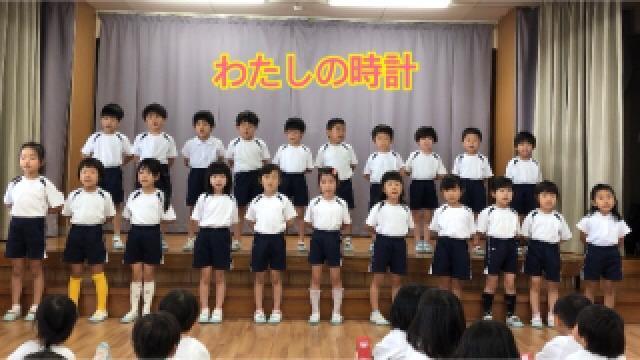 遊戯室で各クラスの歌の発表をした後、自慢の時計をお当番さんが披露してくれました。