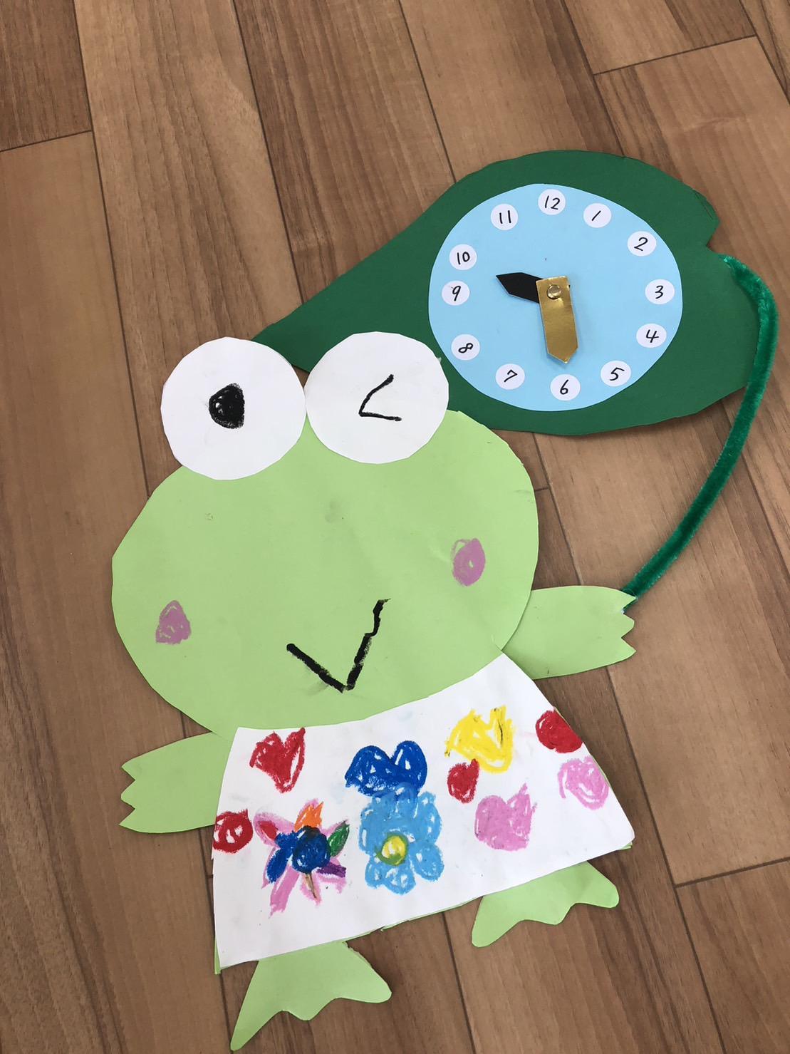 年少たんぽぽ組さんは、ケロケロケロッピーの時計をつくったよ。