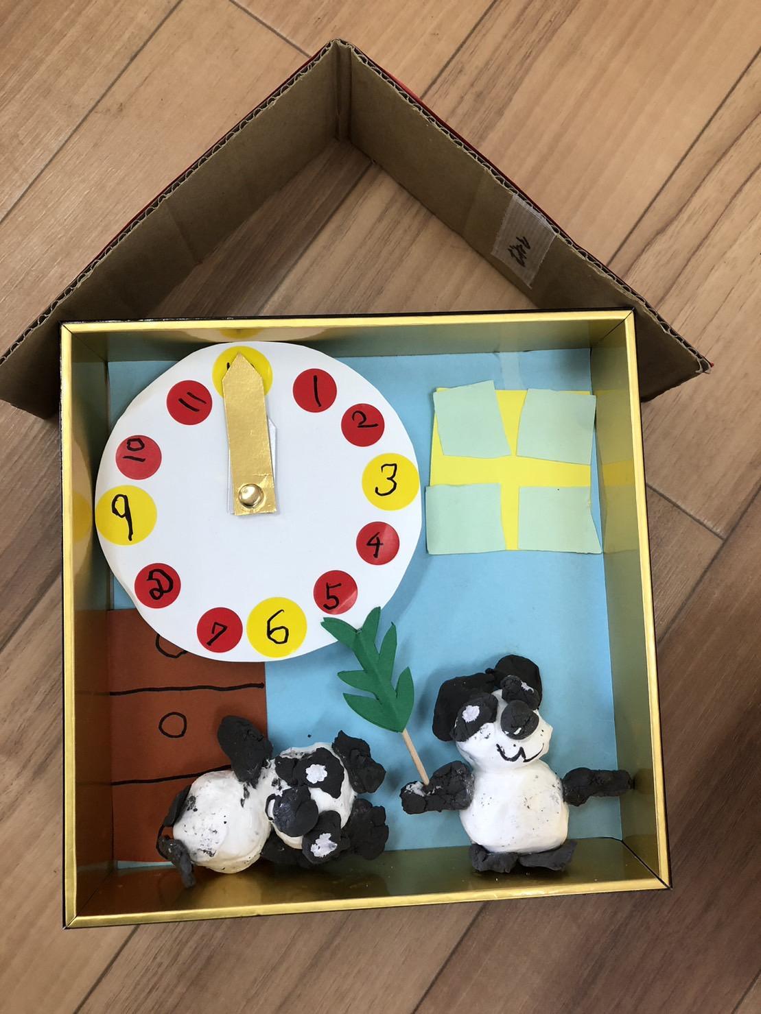 年中うめ組さんは、パンダのお家時計を作りました。