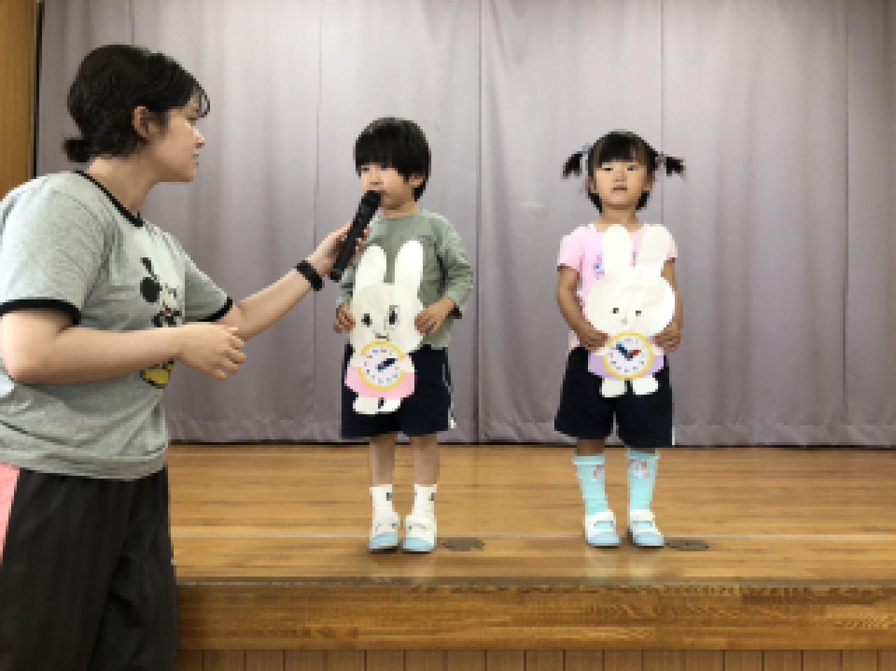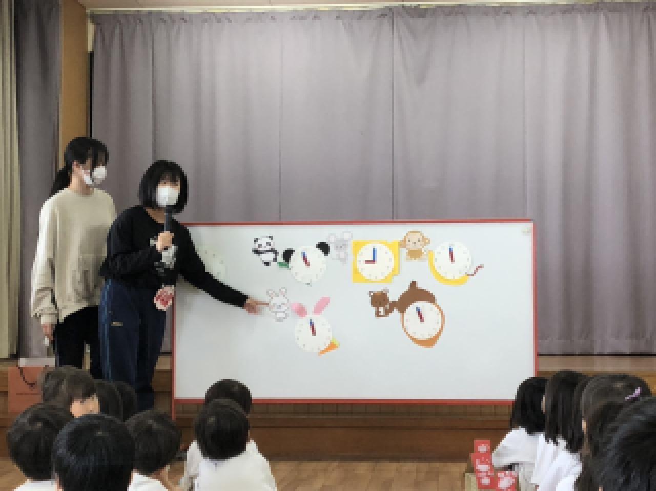 実習生の先生が時計クイズをしてくれました。