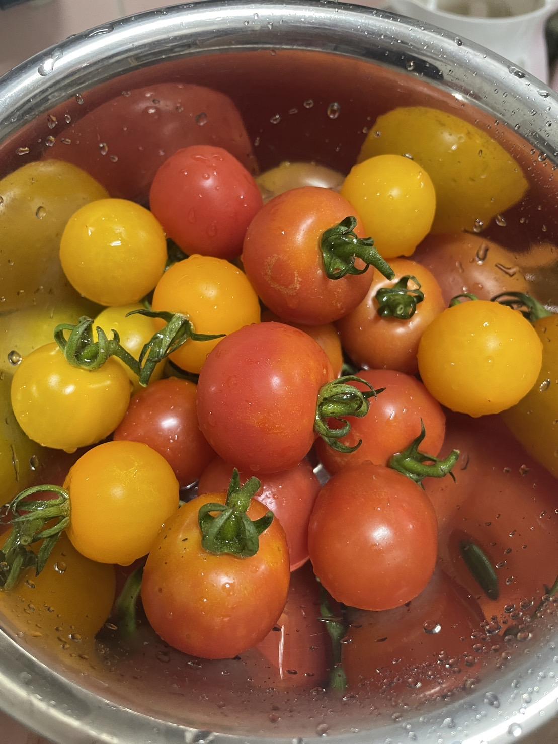 今日はトマトがたくさん採れたのでピザ作りをしました!🍕