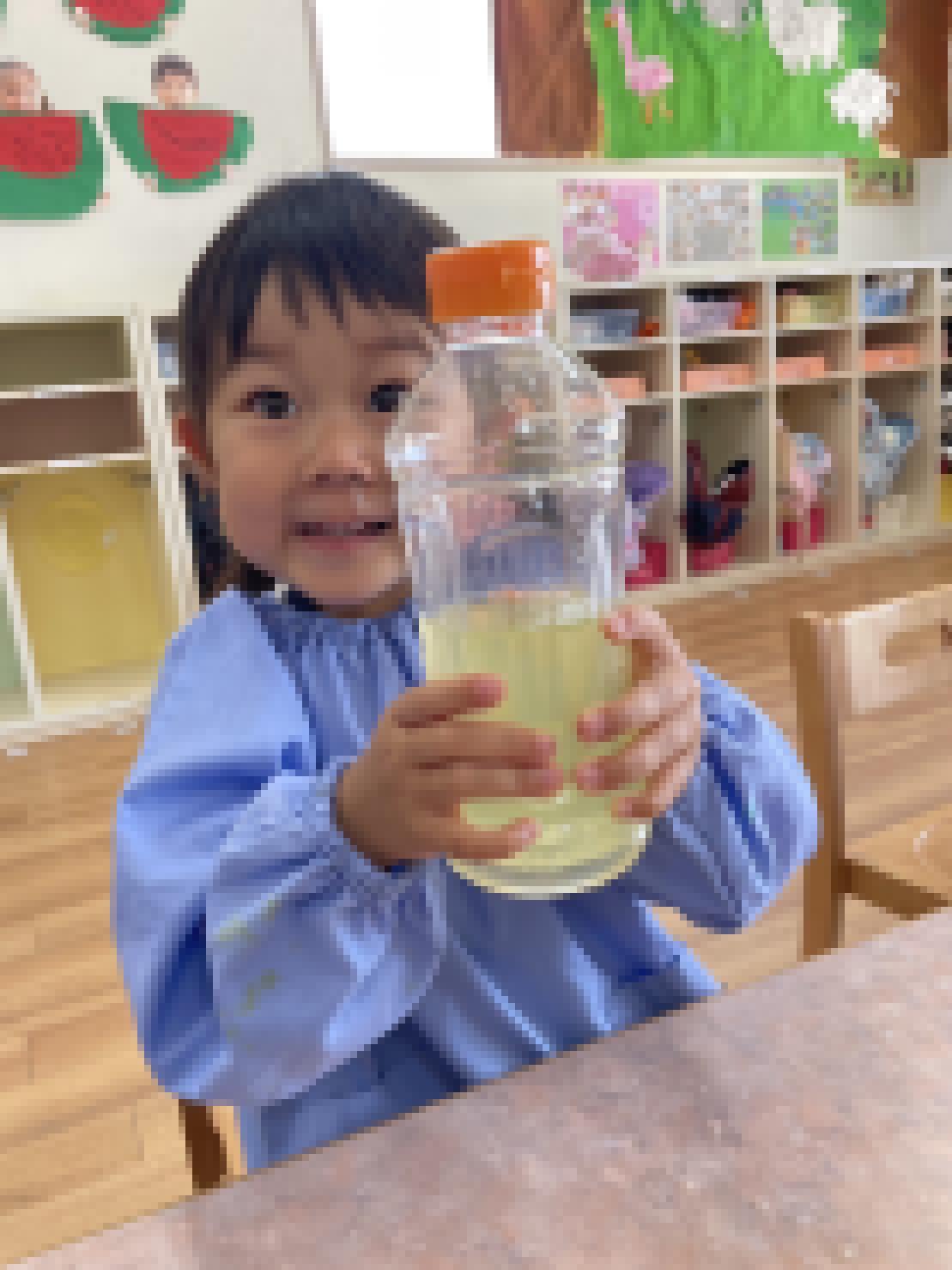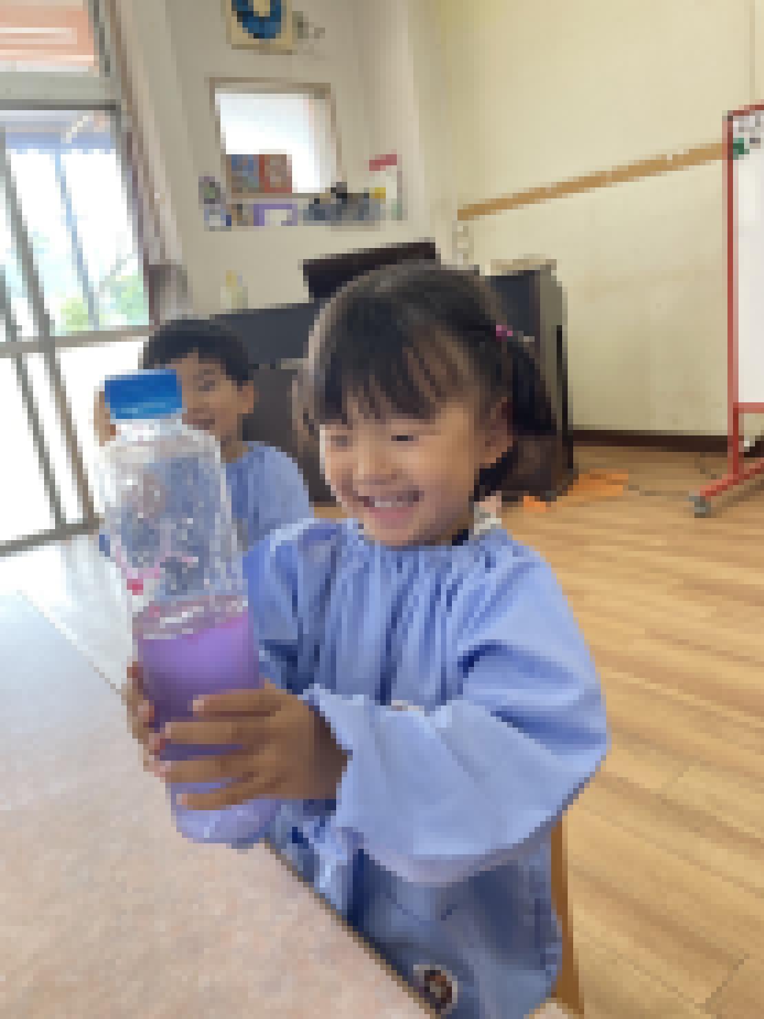 お花や葉から色が出たりシェイクすると色が出ることに驚きでびっくりした子どもたちの顔が可愛かったです🤭♡