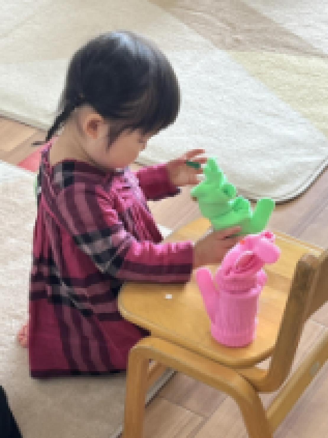 そのあと、ママに作ってもらったうさぎを手にはめて