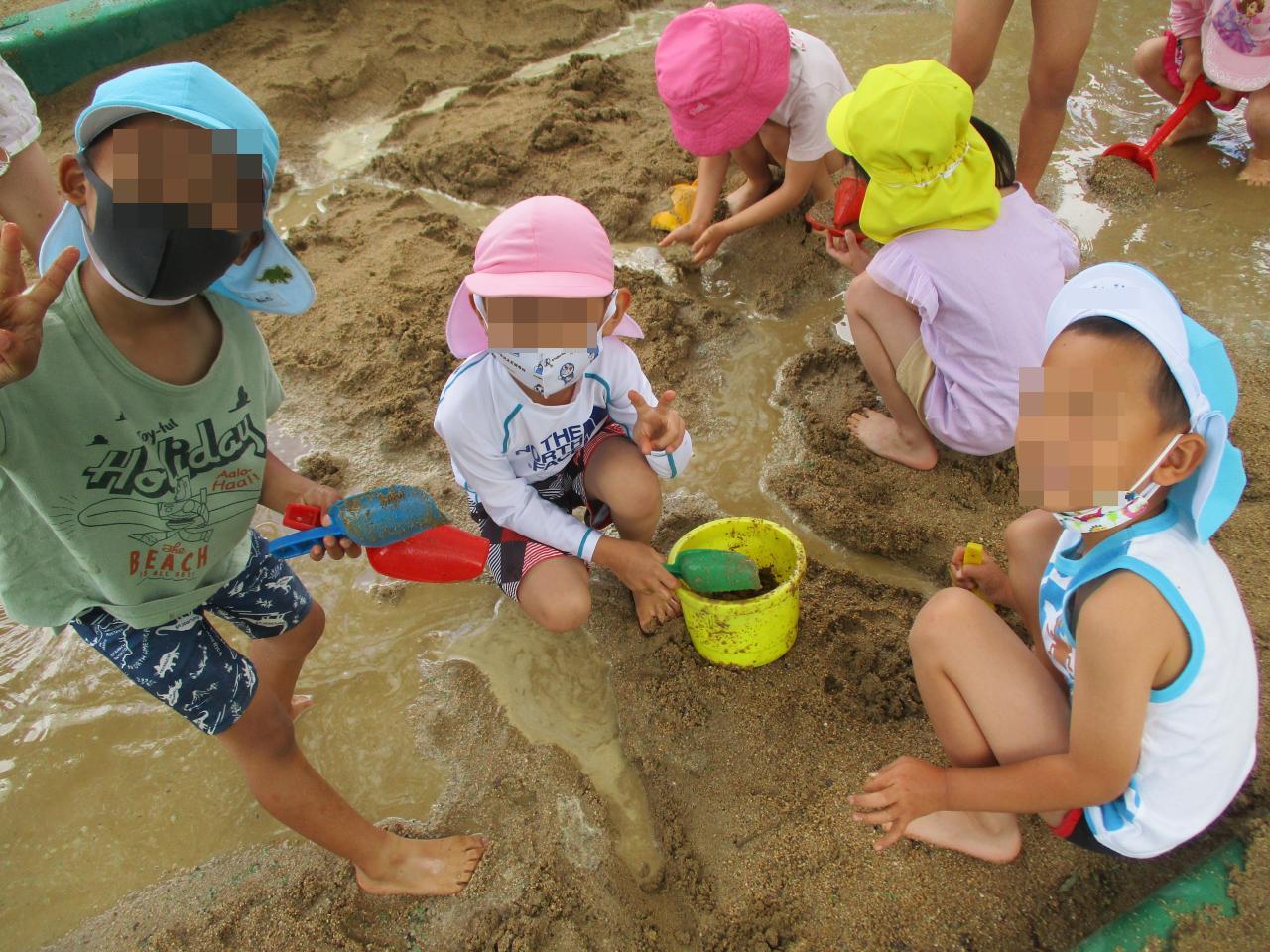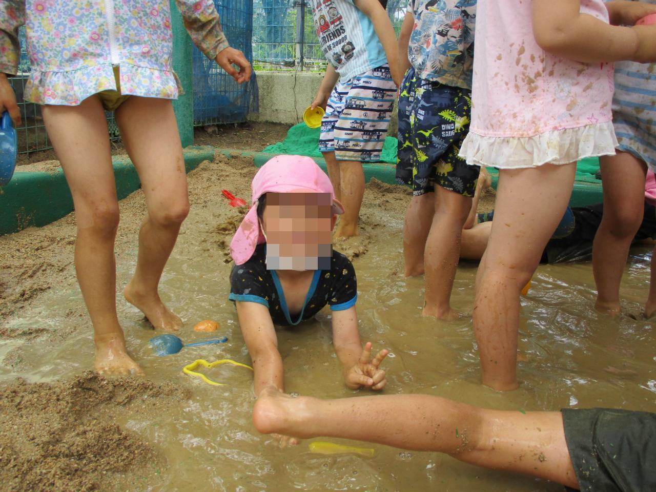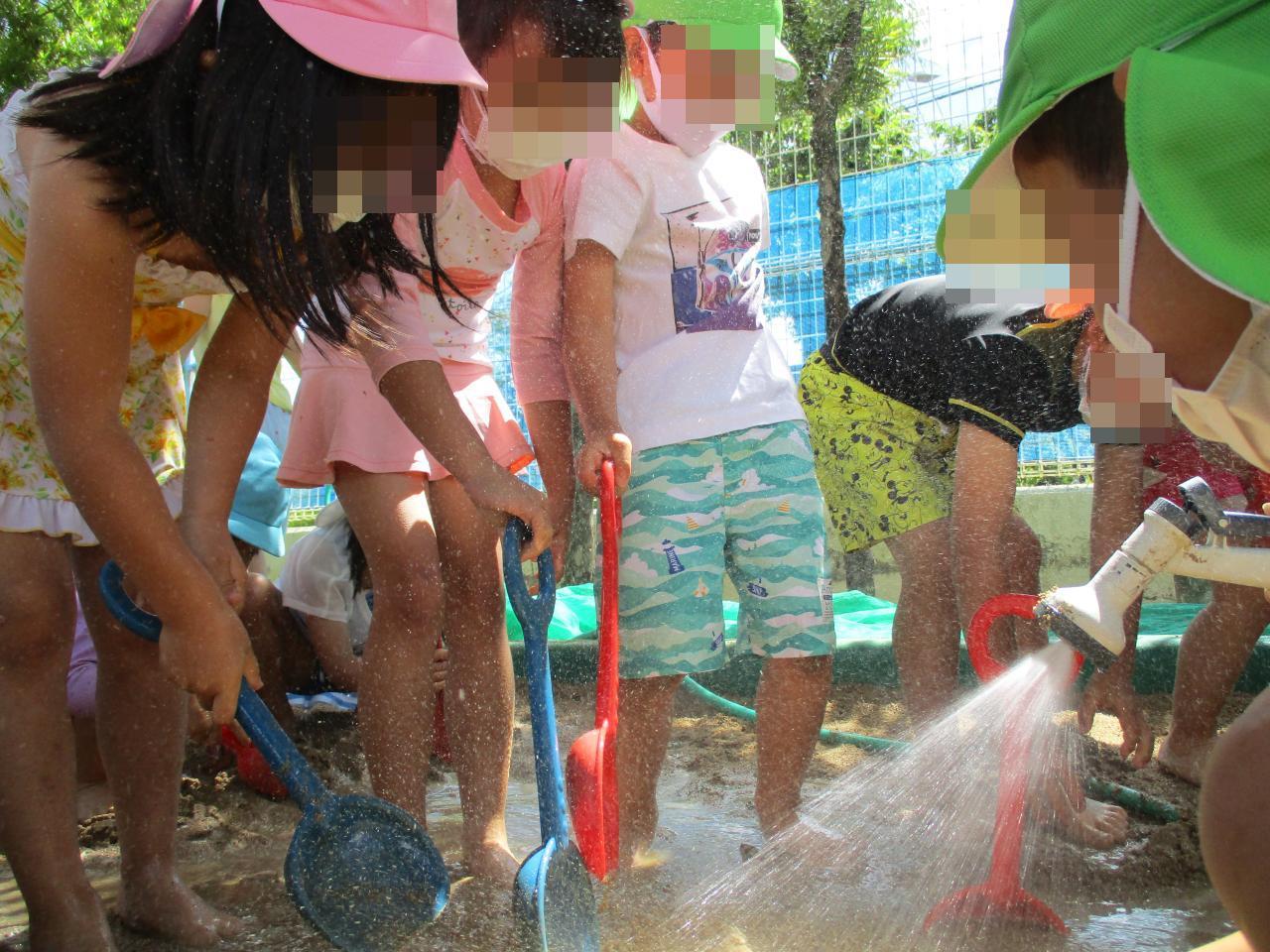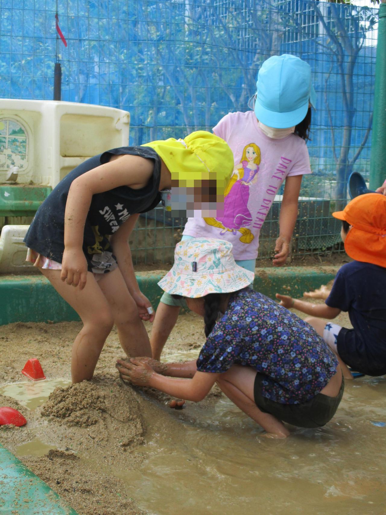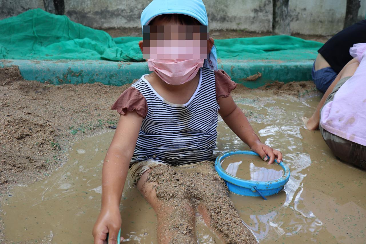過ごしやすいお天気の中、年長児各クラスで泥んこ遊びをしました✨