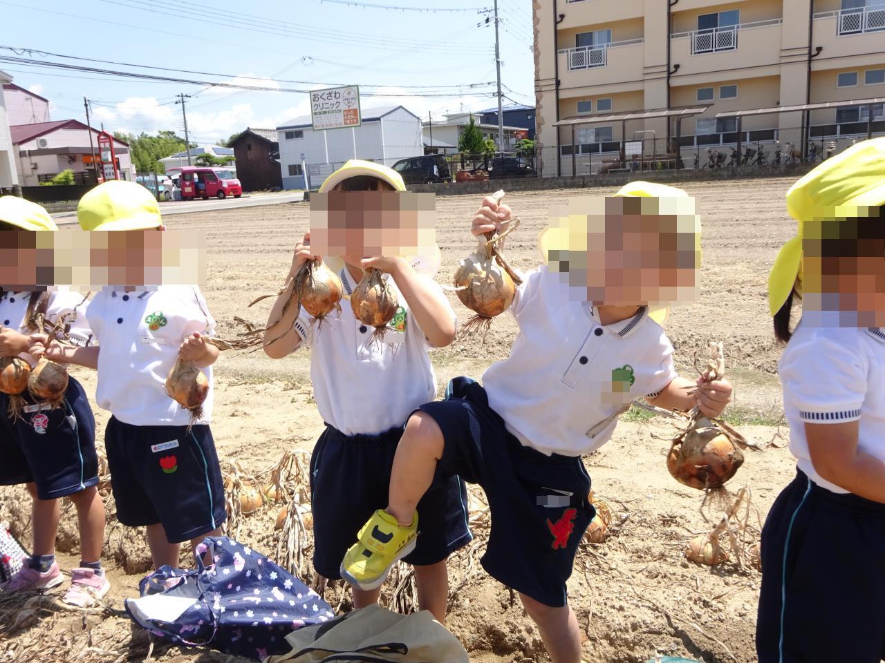 年中児は予定通り大変良い天気の中玉ねぎ収穫に出かけました🚌