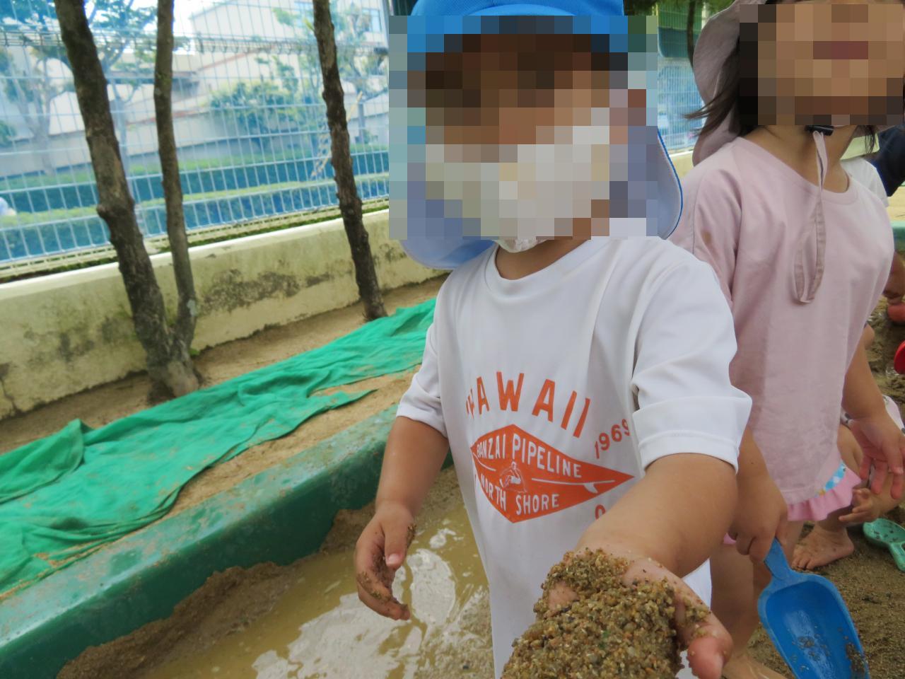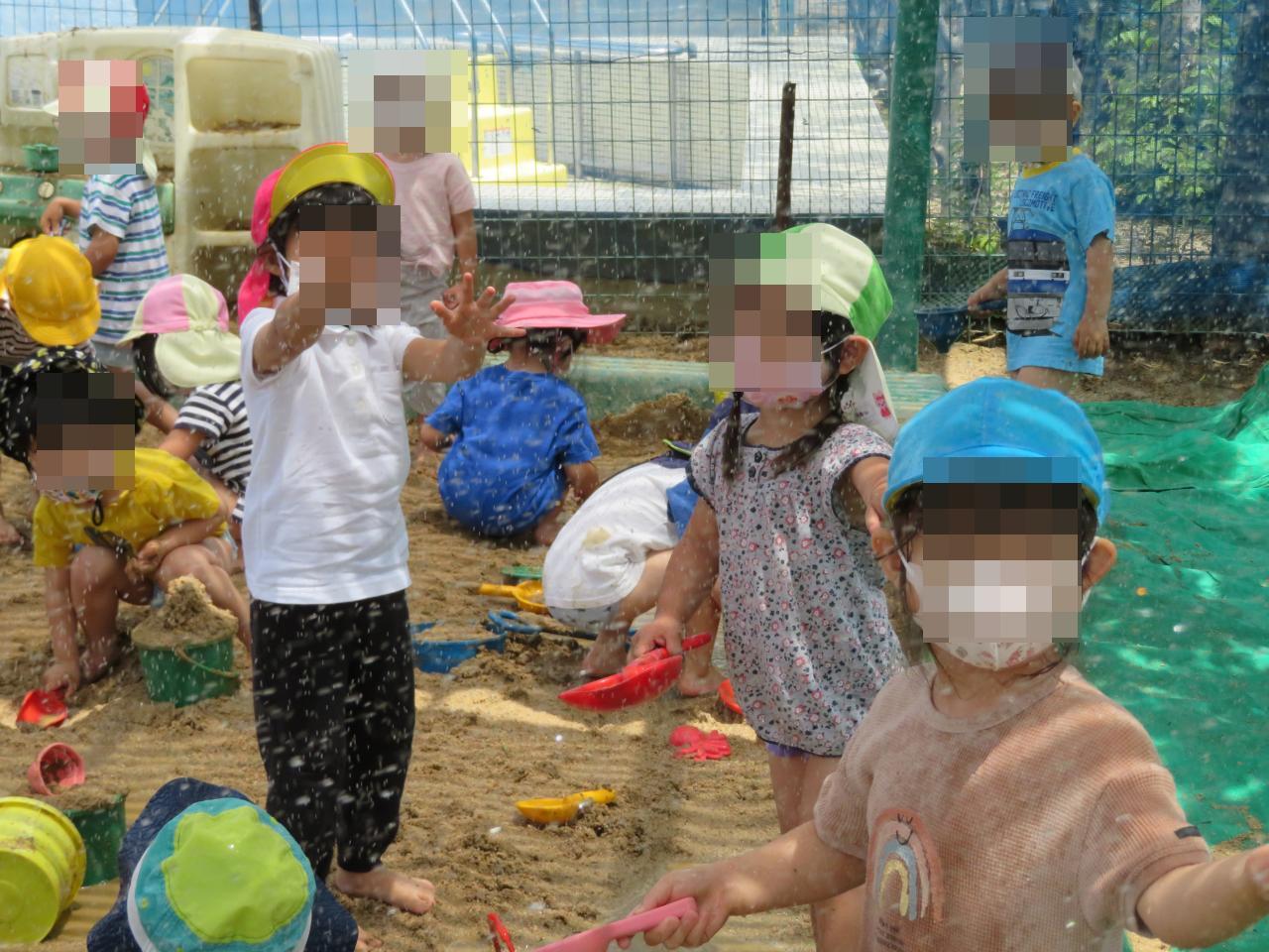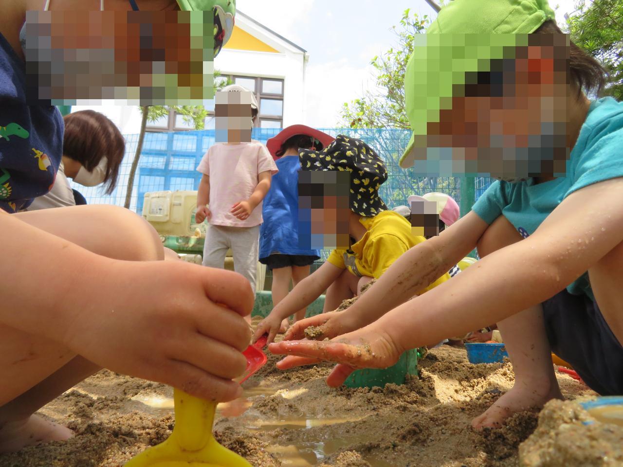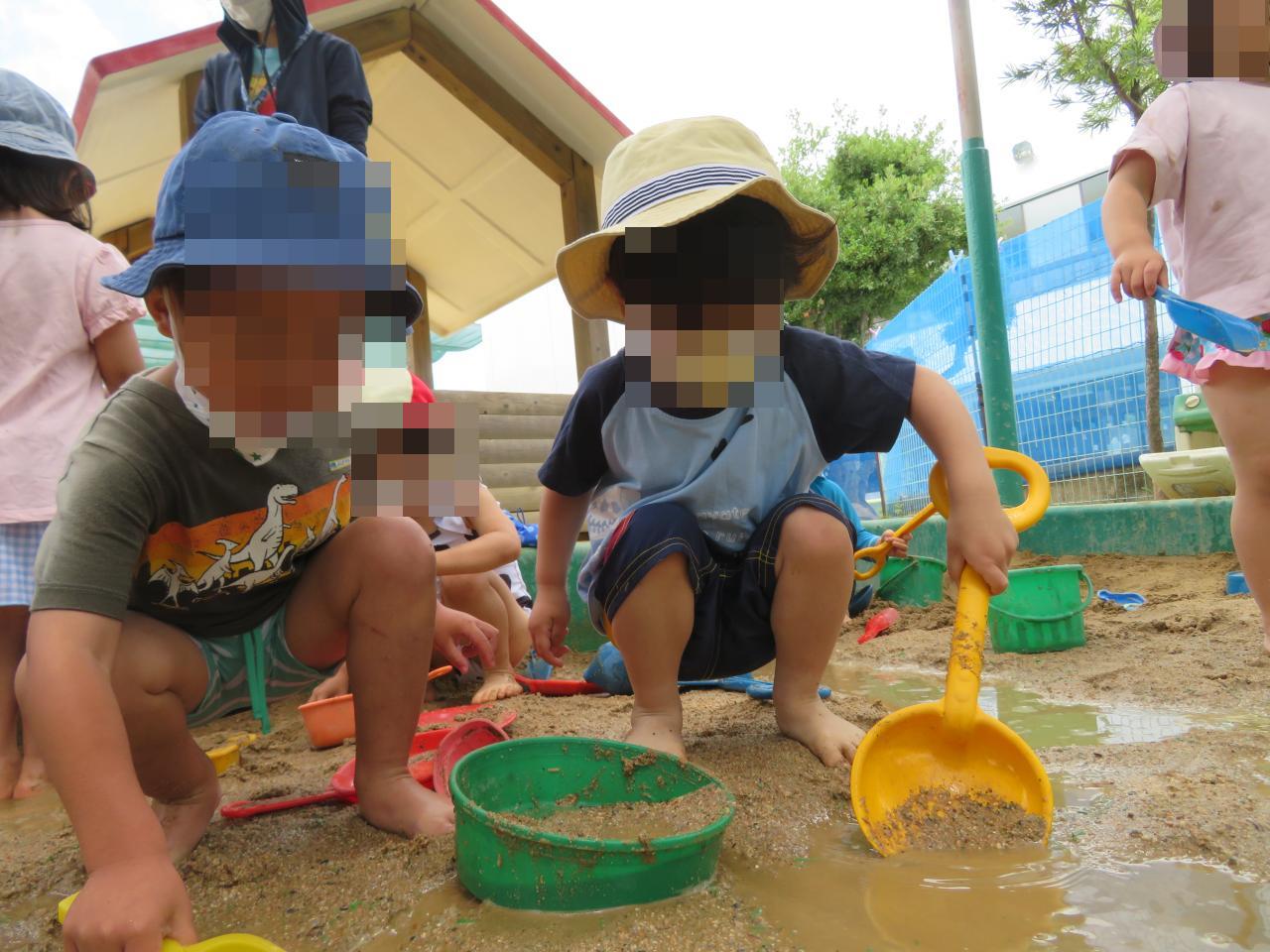砂場で記念写真を撮ったあとは、泥の感触や水の冷たさを存分に楽しみながら遊ぶことができました😄
