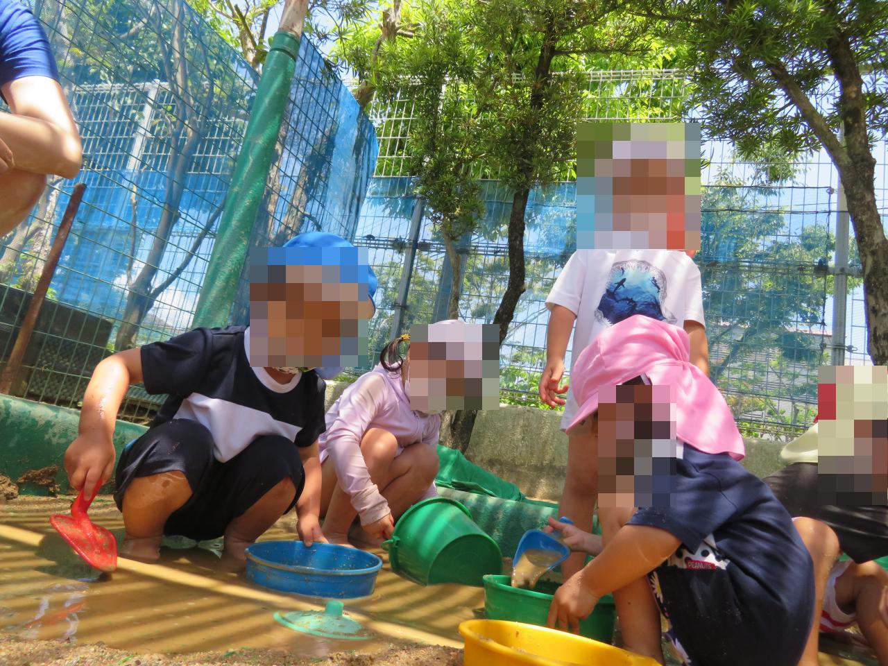 6月8日(水)9日(木)とても良い天気の中、年少さんが泥んこ遊びを行いました☀