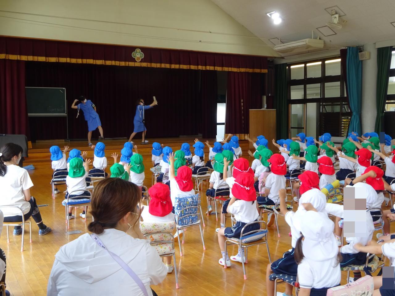 はじめに大ホールでは、信号機の見方や、青信号、黄信号、赤信号それぞれの約束ごとを聞いたり、不思議なノートを使って、みんなで魔法使いに変身し、楽しいマジックを取り入れながら、交通ルールについて学びました😄