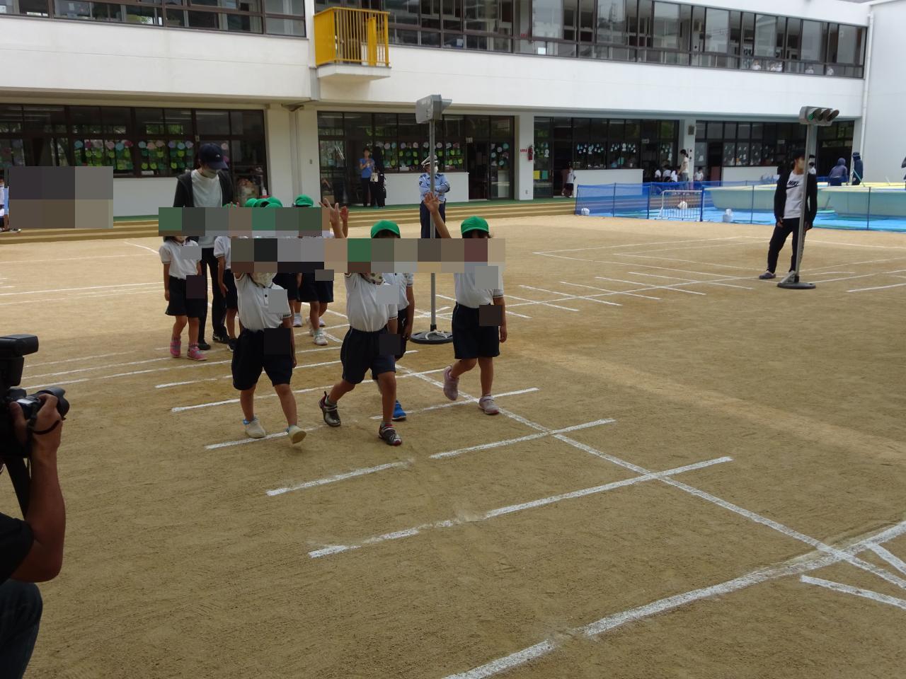 また、「けんちゃん」からも横断歩道のわたりかた、車と歩行者の信号機の違いについて教えてもらい、その後は、園庭で学んだことを思い出しながら「止まる、右、左、右、進む」としっかりと手を挙げて歩行訓練を行うことができました😀