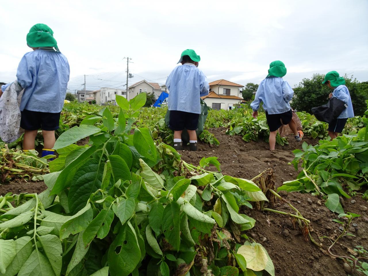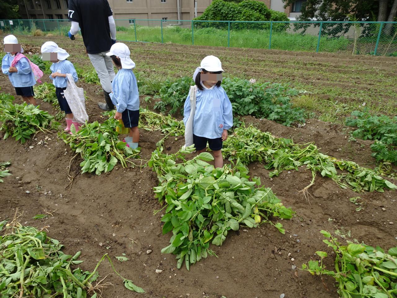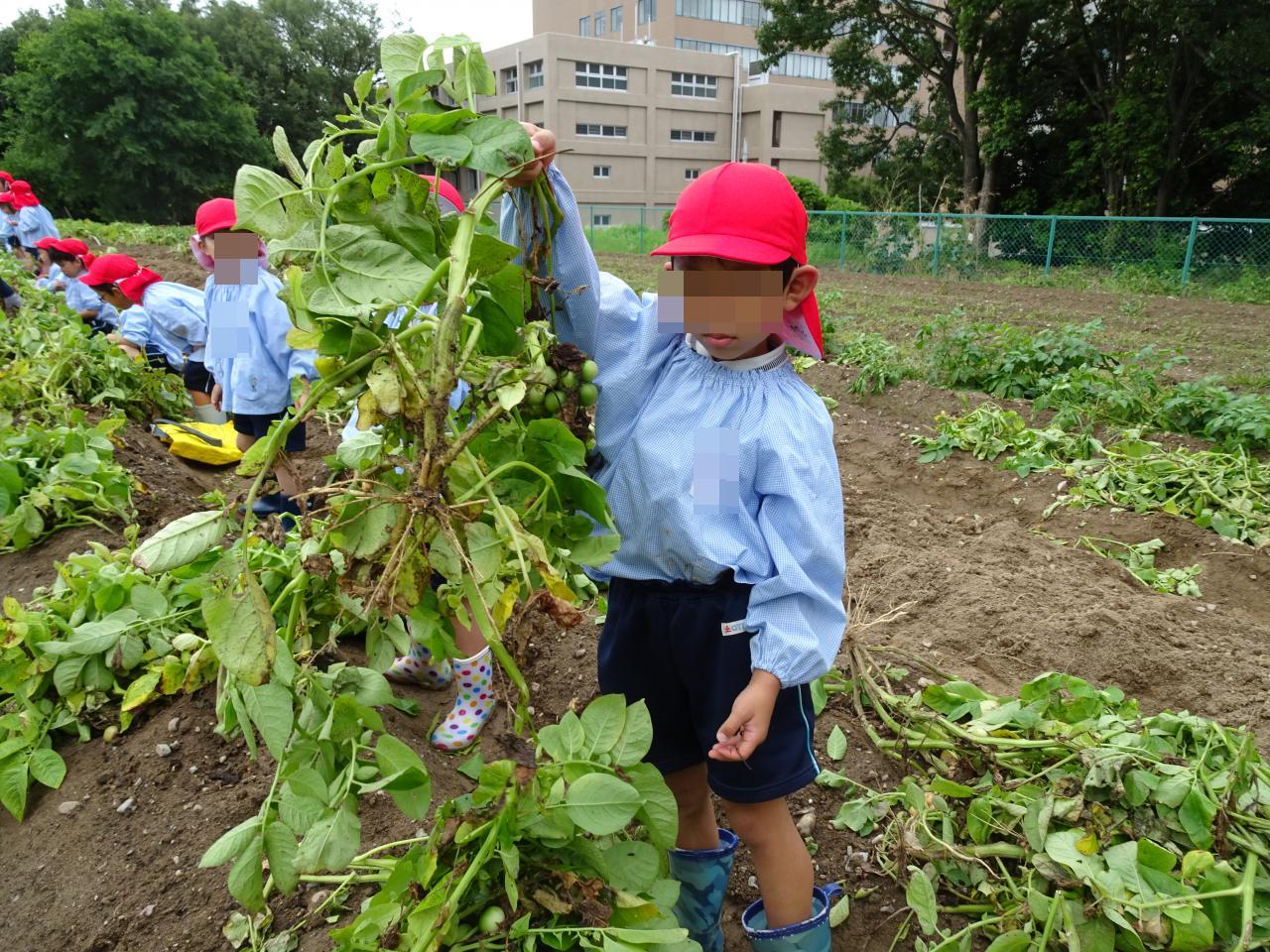 じゃがいもの茎を持って「うんとこしょ!!」と一生懸命引っ張る姿に、さすが年長さんだなと思いました👏
