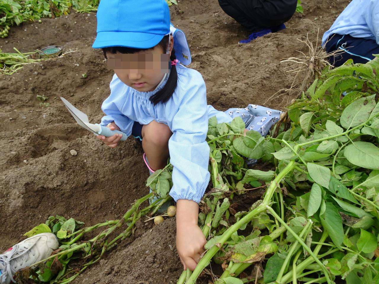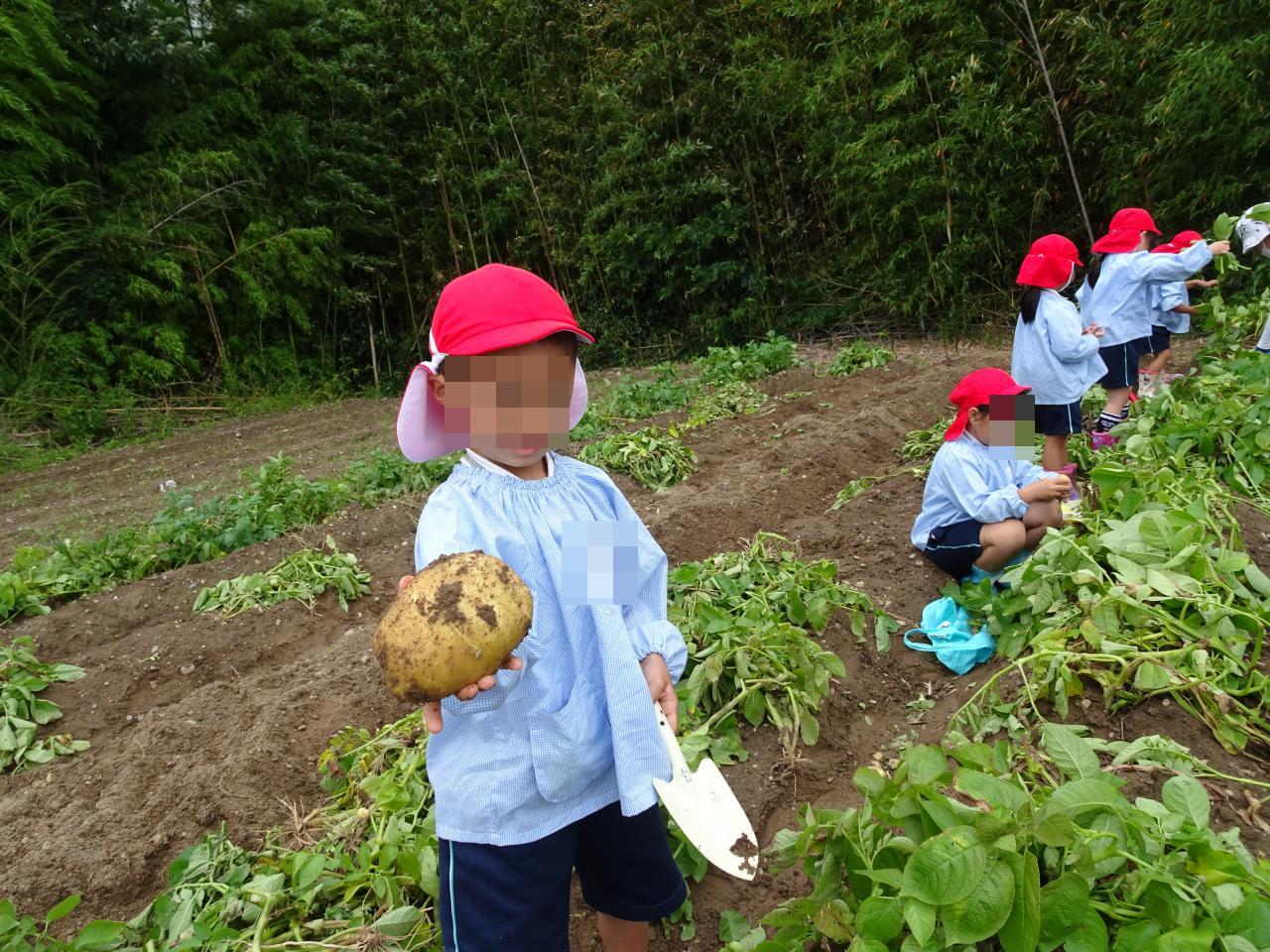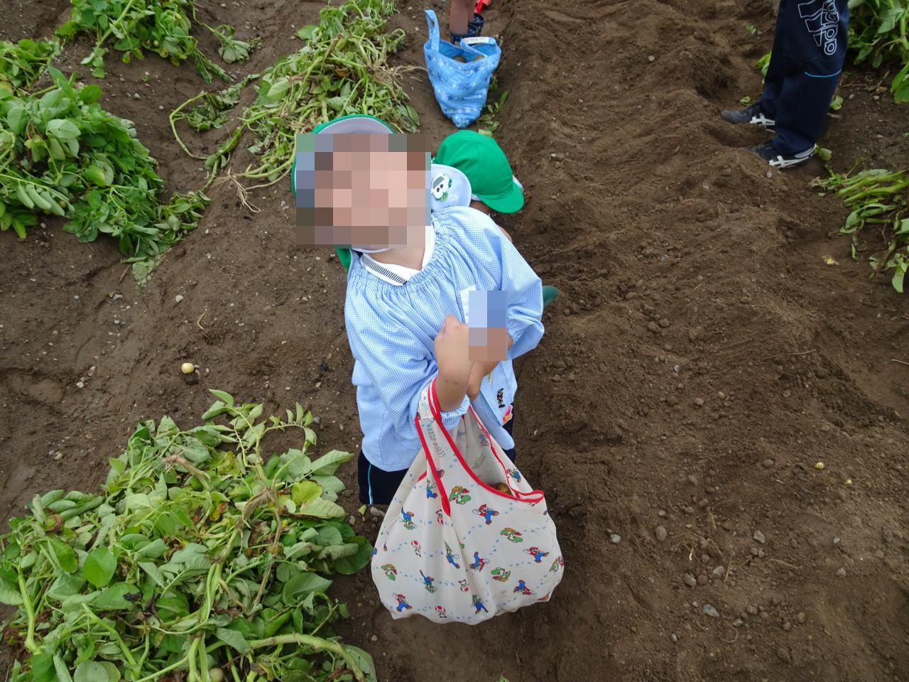 じゃがいもの茎を持って「うんとこしょ!!」と一生懸命引っ張る姿に、さすが年長さんだなと思いました👏