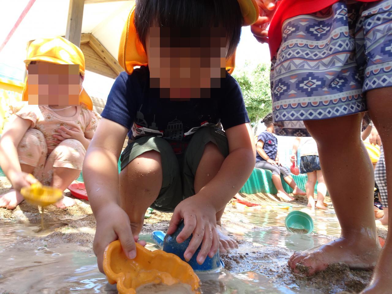 16日(金)は良い天気の中、泥んこ遊びを行いました🌞