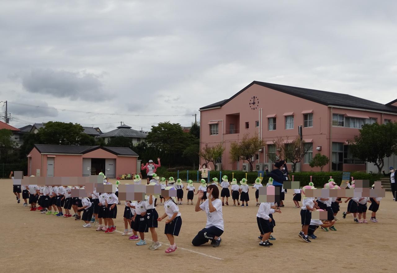 21日(水)に年少さん、年中さんが小寺小学校の校庭での運動会練習に出かけました。