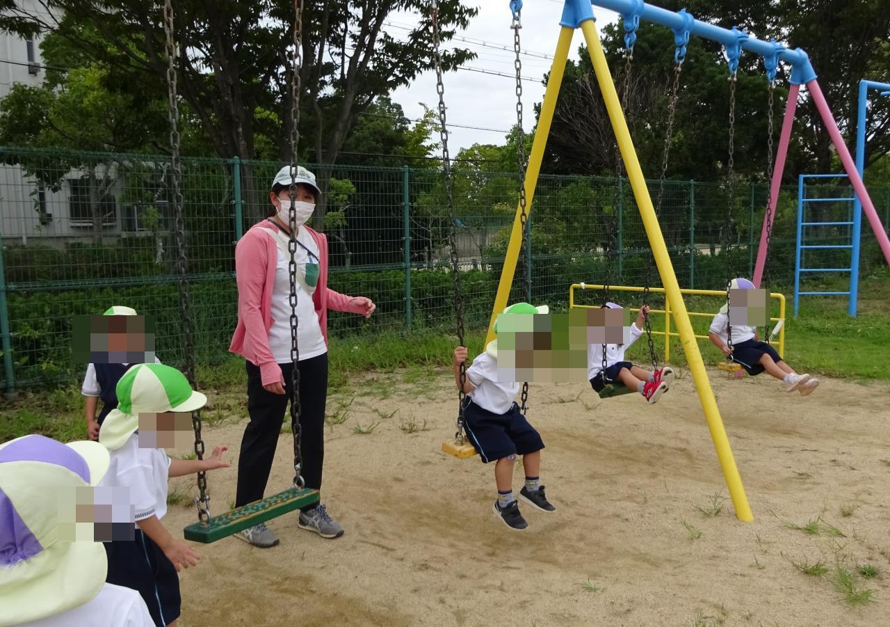 頑張ったご褒美に、小学校の遊具で遊ばせて頂くことができ、夢中で遊ぶ楽しそうな笑顔が見られていました✨