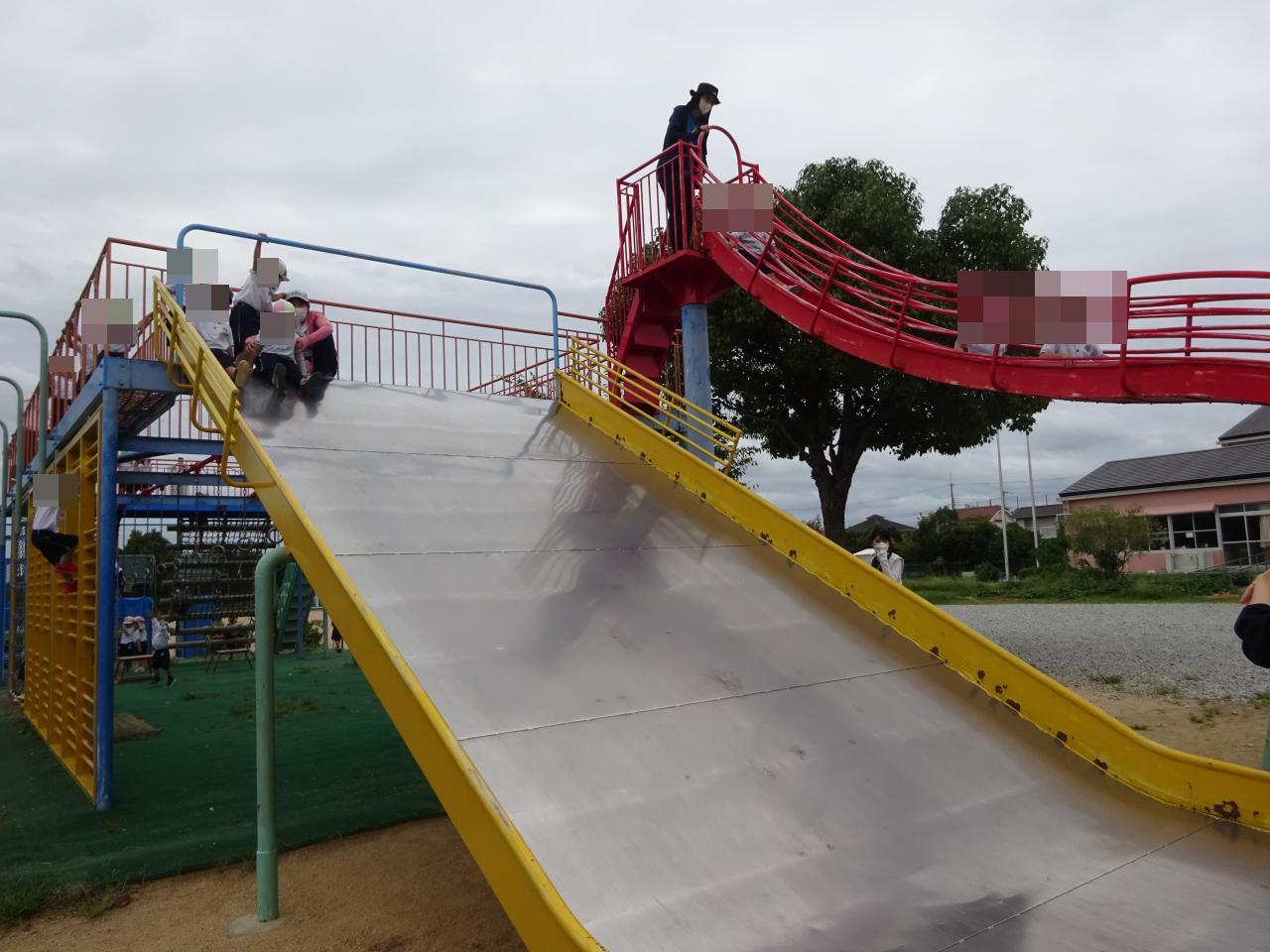 パラバルーン後は年中さんも総合遊具の大きな滑り台を滑って幼稚園へ😄