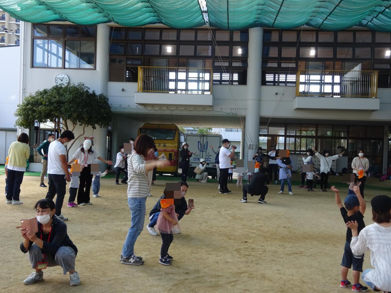 お家の方と一緒に元気よく登園し、体操をした後には、いよいよ開始!