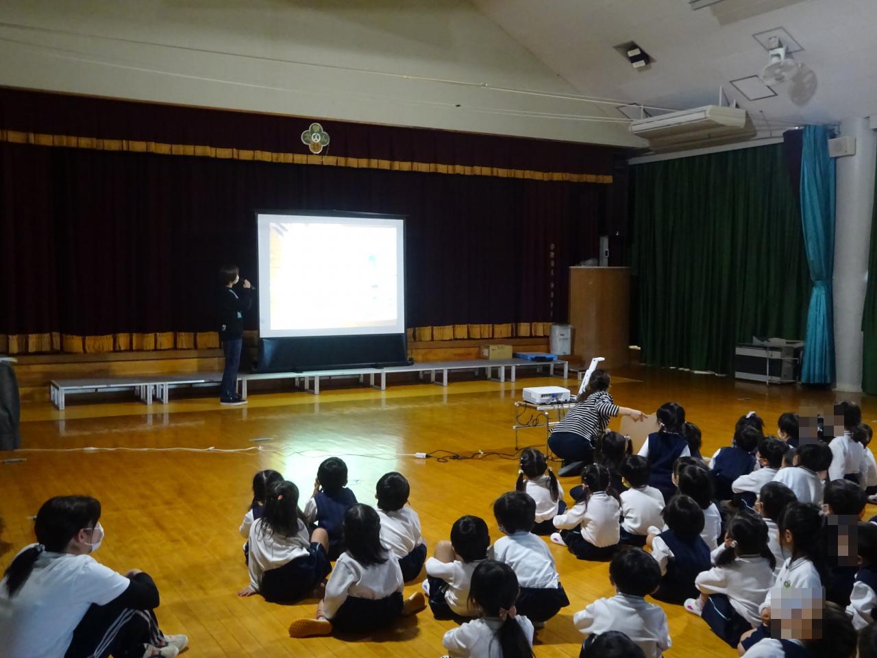 子どもたちはしっかりとお話を聞き、毎月の訓練が身に付いているようでした。