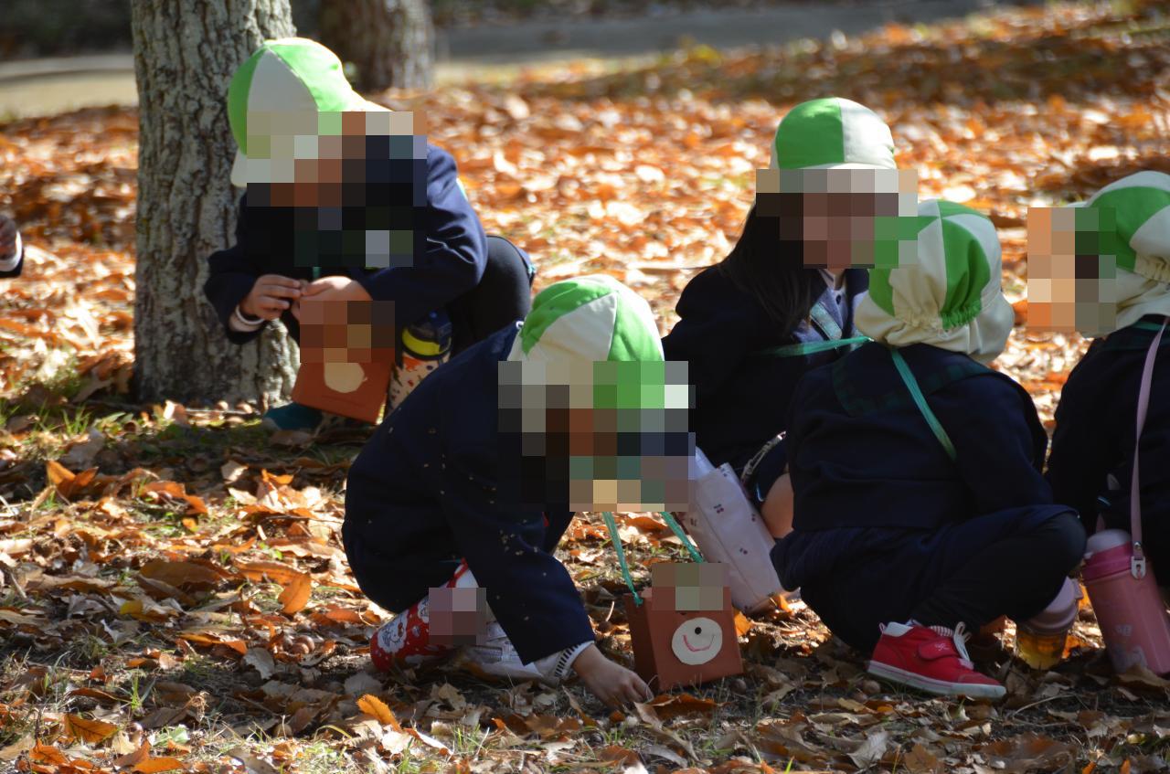 公園までの道では、赤や黄色に色づいた葉に気付き、「秋みーつけた!」と嬉しそうなお声が聞かれたり、小鳥の鳴き声に「山の音楽家の声が聞こえる♪」と季節のお歌を楽しく口ずさんだりと、子どもたちのワクワクした様子がとても可愛らしかったです💕