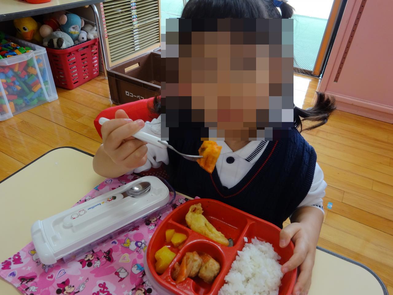 給食の時間には柿を頂き、「柿だいすき!」「おいしそう~」と大きな口で食べる姿が見られました!