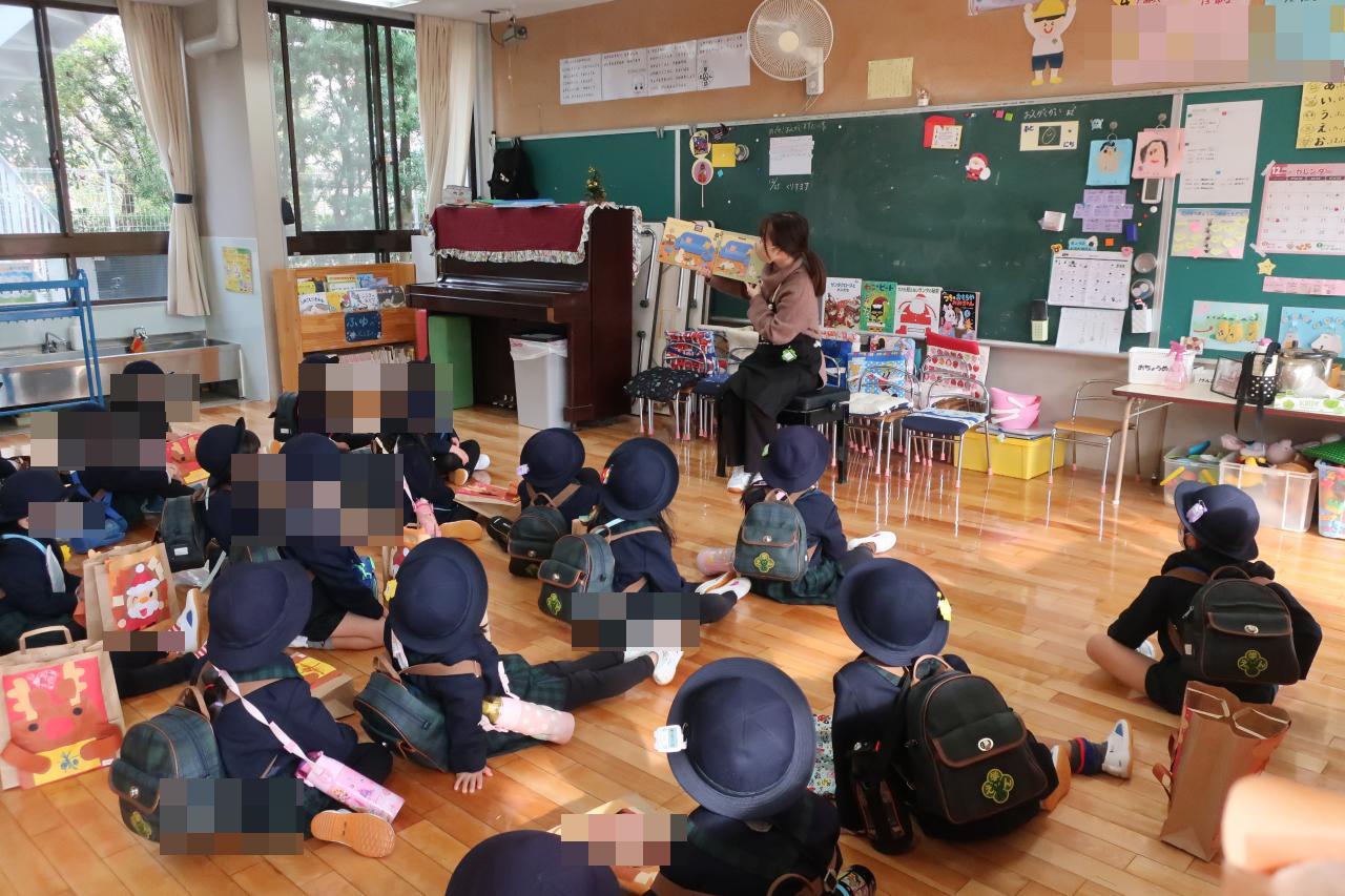 お昼からは、年中さんが大学生のお兄さんお姉さんと一緒に遊び、帰る前に絵本を読んでもらいました!