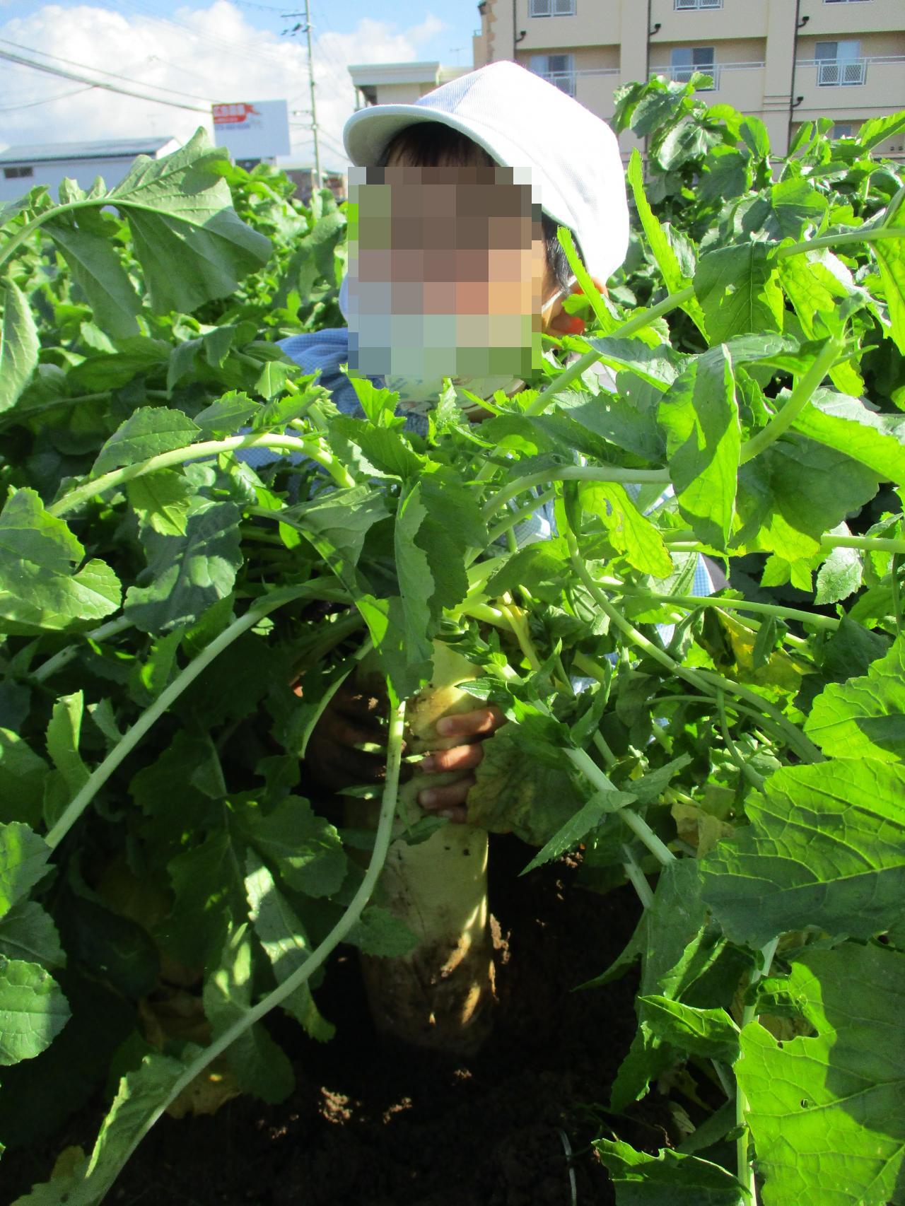 泥だらけになりながら、自分のお顔より大きくとっても重たい大根を収穫した子どもたち✨