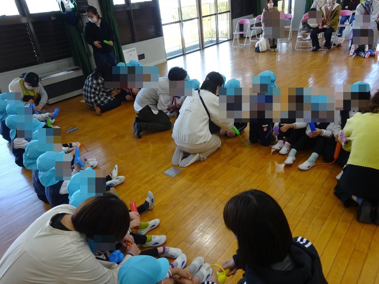 先週に年長さんがねずみのバルーンを作っていたのを見て、「早く遊びたいなぁ」と期待を高めていた子どもたち😀