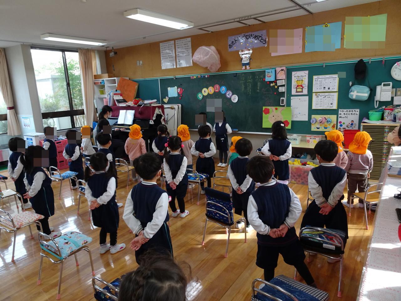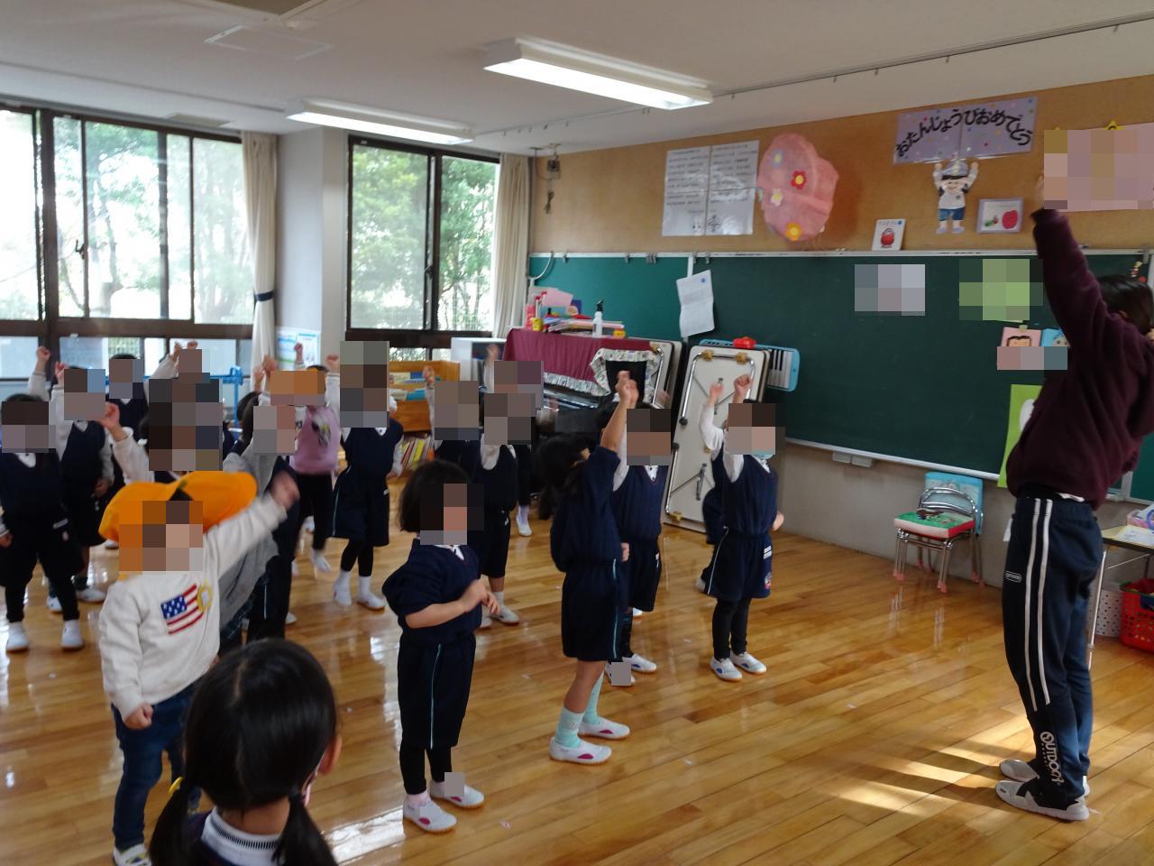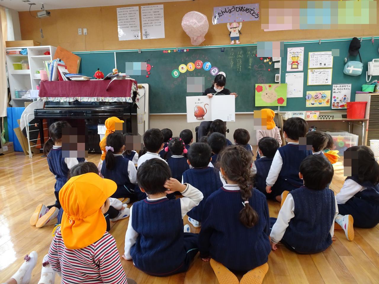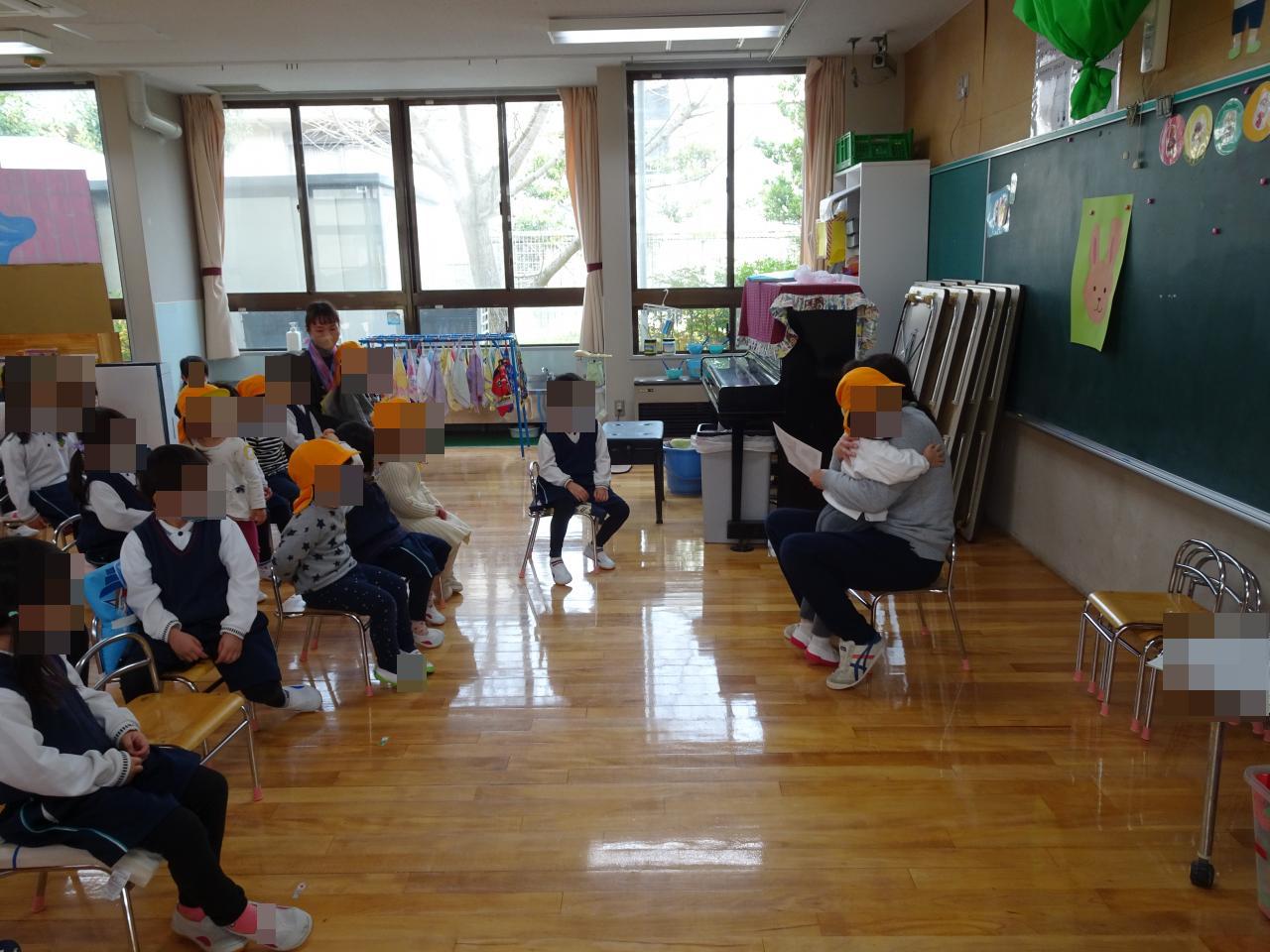 少しの時間でしたが、朝の歌を歌ったり、発声練習を教えてもらったりと、普段年少さんが行っている活動を体験しました。