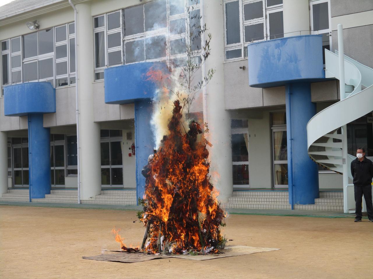 やぐらの燃えた煙が空まで届くと字がきれいになることや、1年間健康でくらせますようにという願いが届くことを学びました。