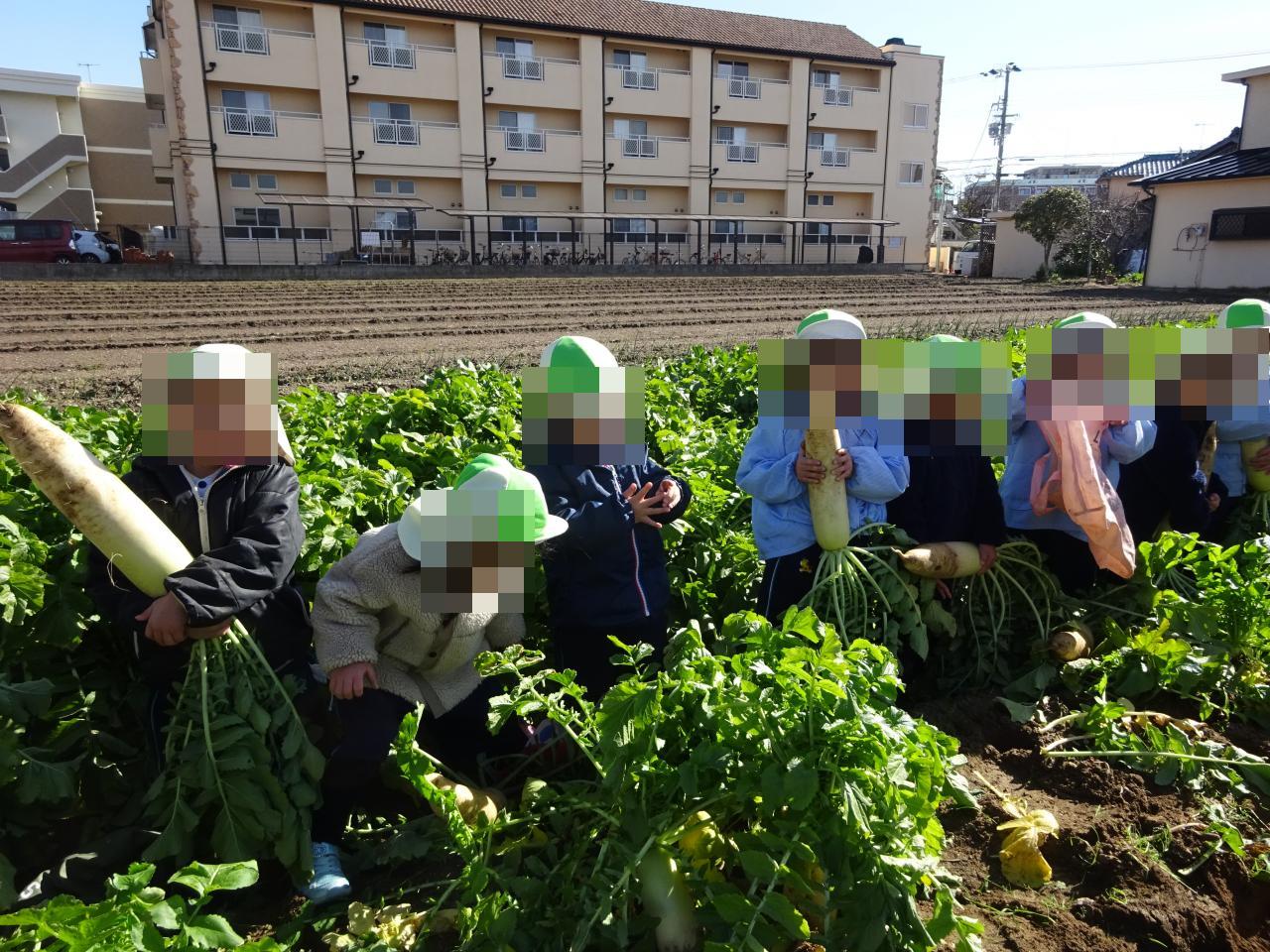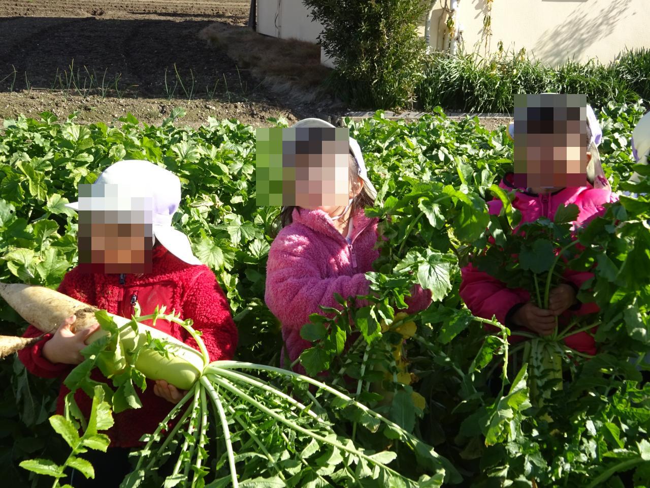 昨年末に引き続き、2回目の大根収穫だったため、子どもたちは「パワー120%ためてきた🔥!」「ぐらぐらすっぽーんだよね😀?」と朝から張り切っていました💪