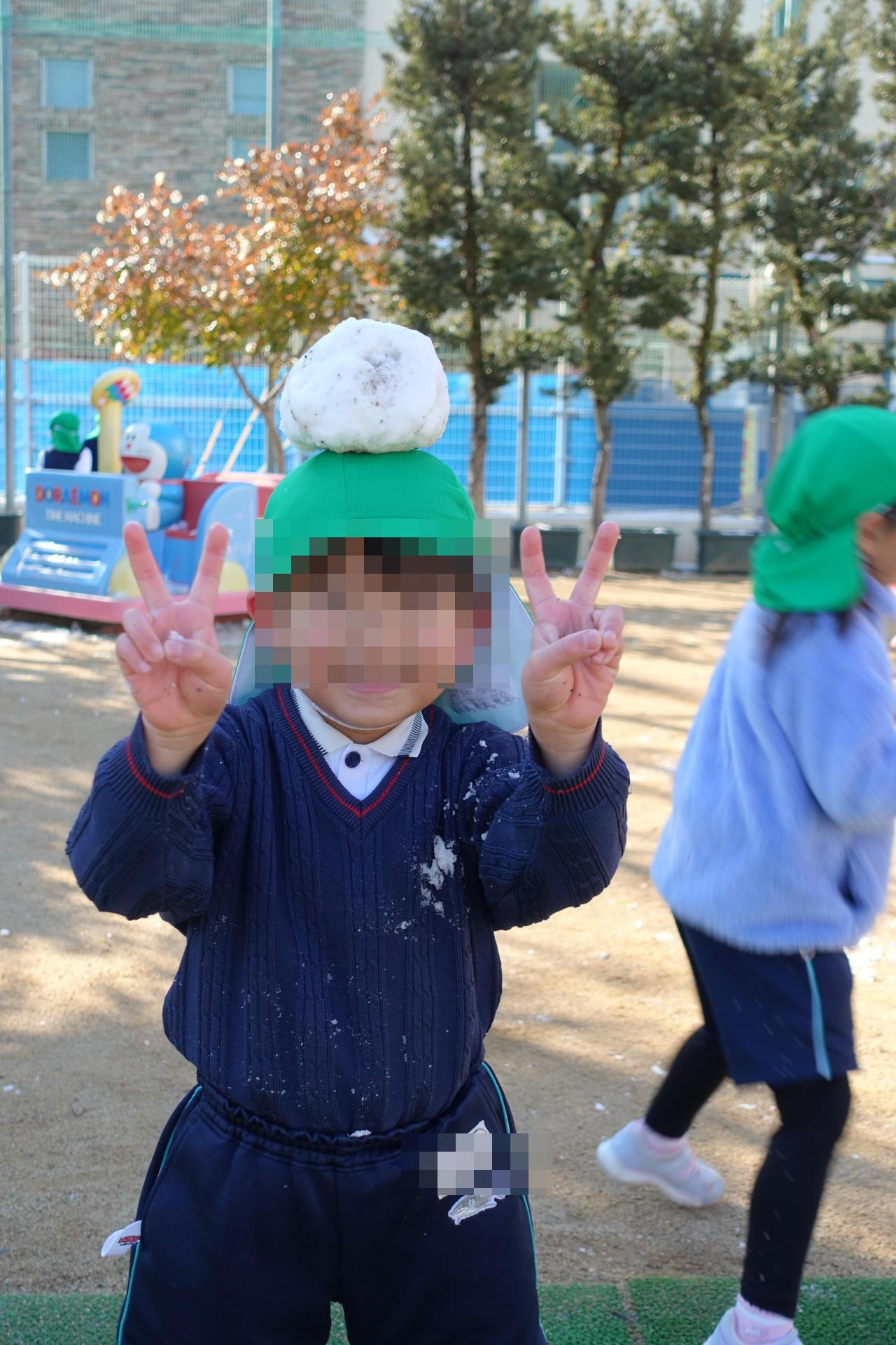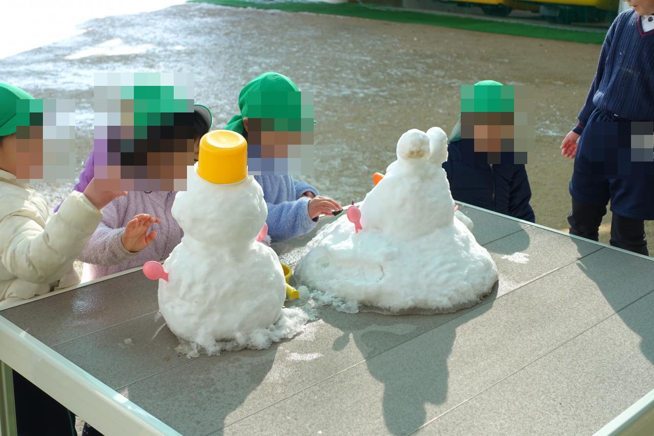 雪の降った翌日、残った雪や氷で遊んだよ!!