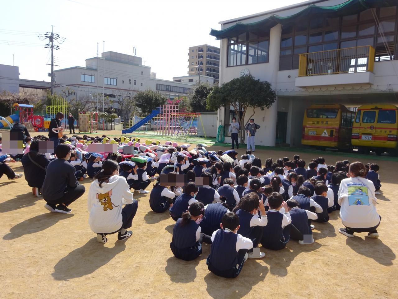 本日、子どもたちに時刻を知らせずに避難訓練を行いました。