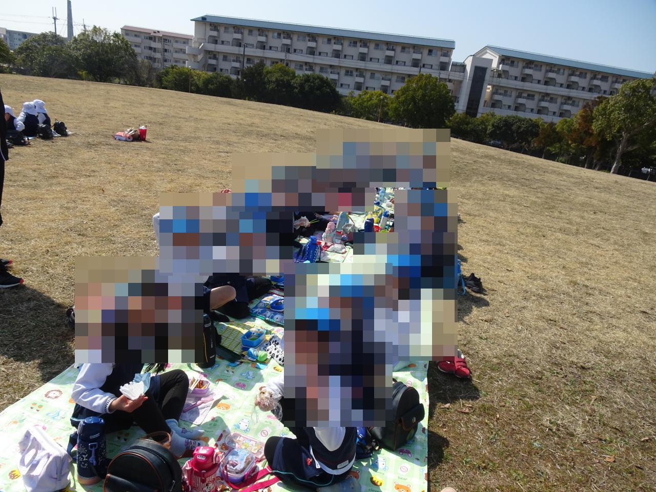 着いたらまずは、大きなレジャーシートの上で並んでお弁当を食べました🍙