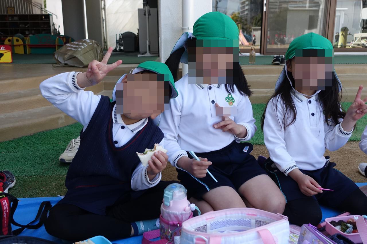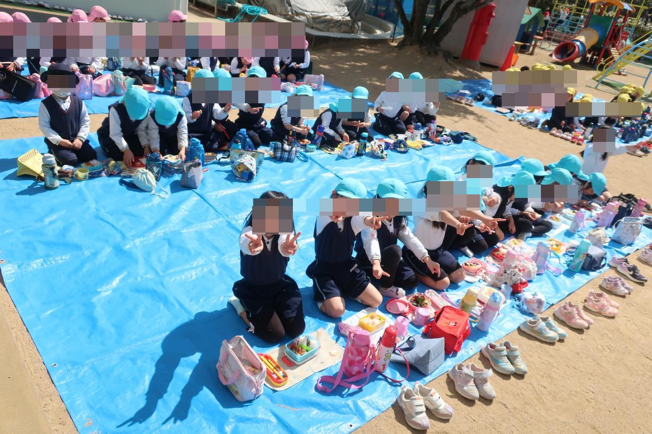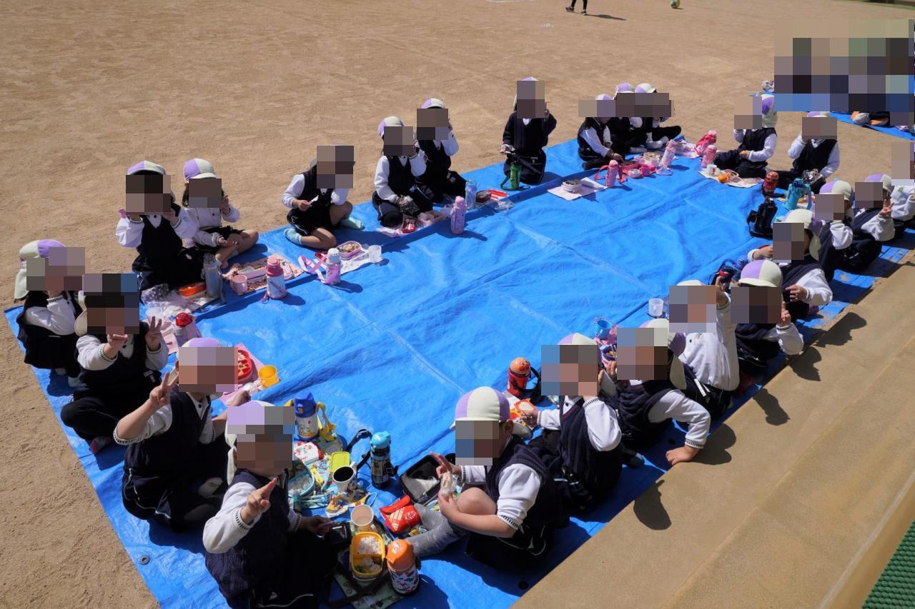 また、お天気も良かったため、今日は全学年園庭でピクニックをしました🍙💕