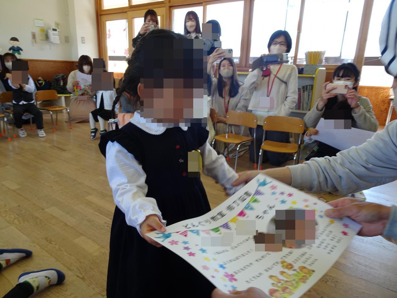 閉講式では園長先生から修了証書を頂き、1年間子どもたちが頑張ってきた証が形となりました✨