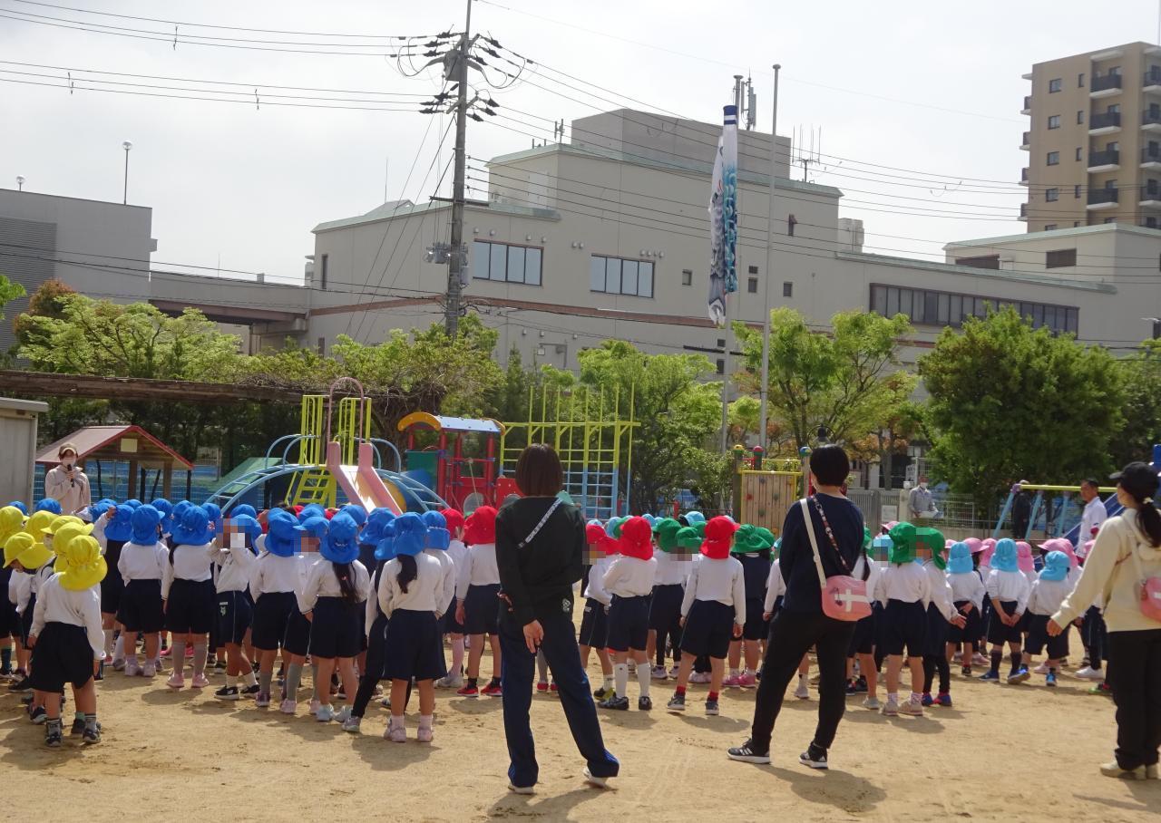 園長先生のお話で、こいのぼりを飾る意味を知った子どもたちは、元気いっぱい「こいのぼり」の歌を歌う姿や、どこからこいのぼりが登ってくるのか興味津々で見つめる姿が見られました😄