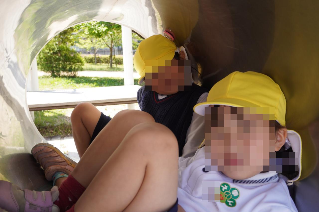 太陽の日差しが暑く感じるほどの天候の中、元気いっぱいに遊んで降園していますので