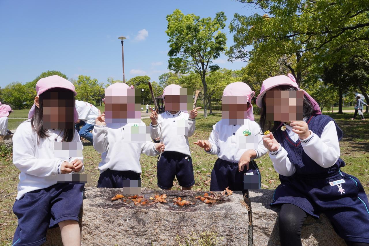 登園時から「今日のお弁当はサンドウィッチだよ✨」「どんな公園か楽しみだなあ💕」と遠足に期待を高め、ワクワクしている子どもたち😆