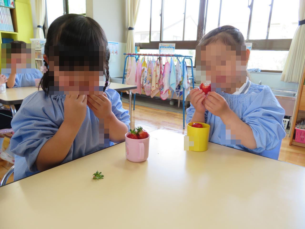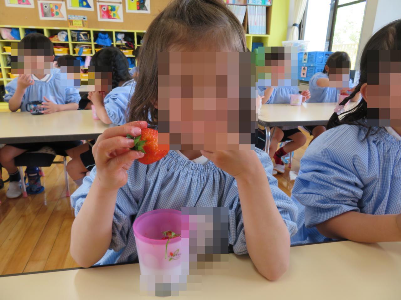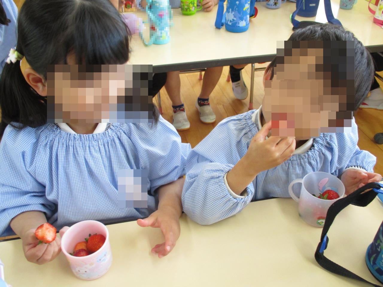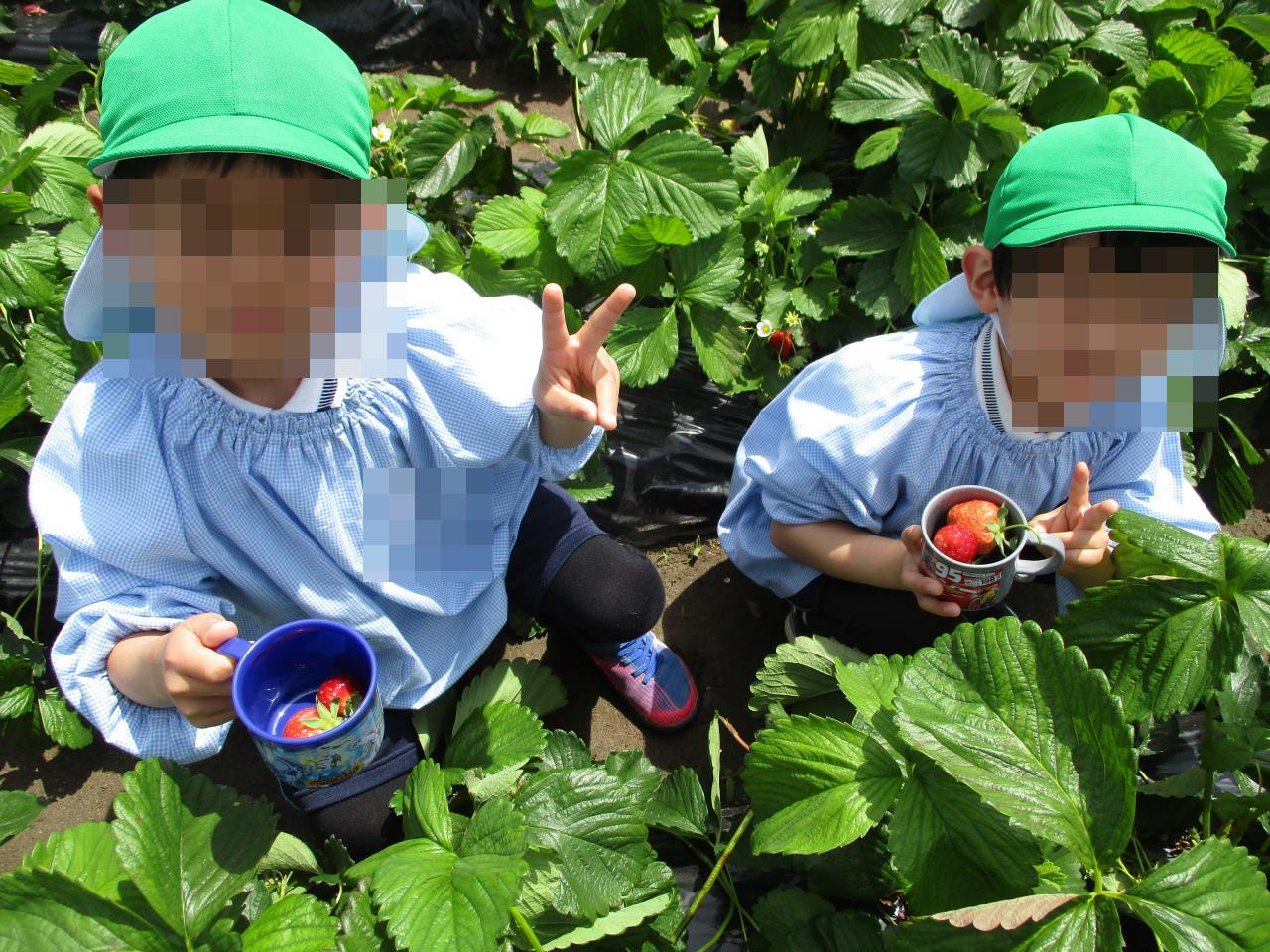 「いちごいっぱい食べる!」「甘いかなあ~?」と朝から楽しみにしており、張り切って準備をしていました😄