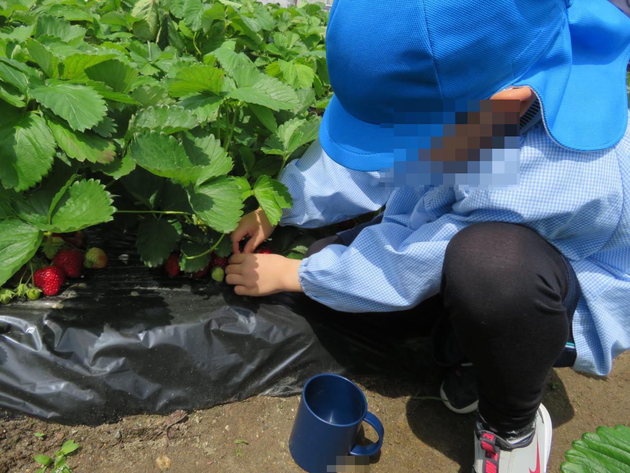 いちごについて子どもたちもよく知っていたようで「下の方が甘い!」「葉っぱの上をもって優しく採る!」と元気いっぱいに答えてくれる子どもたちでした🌟