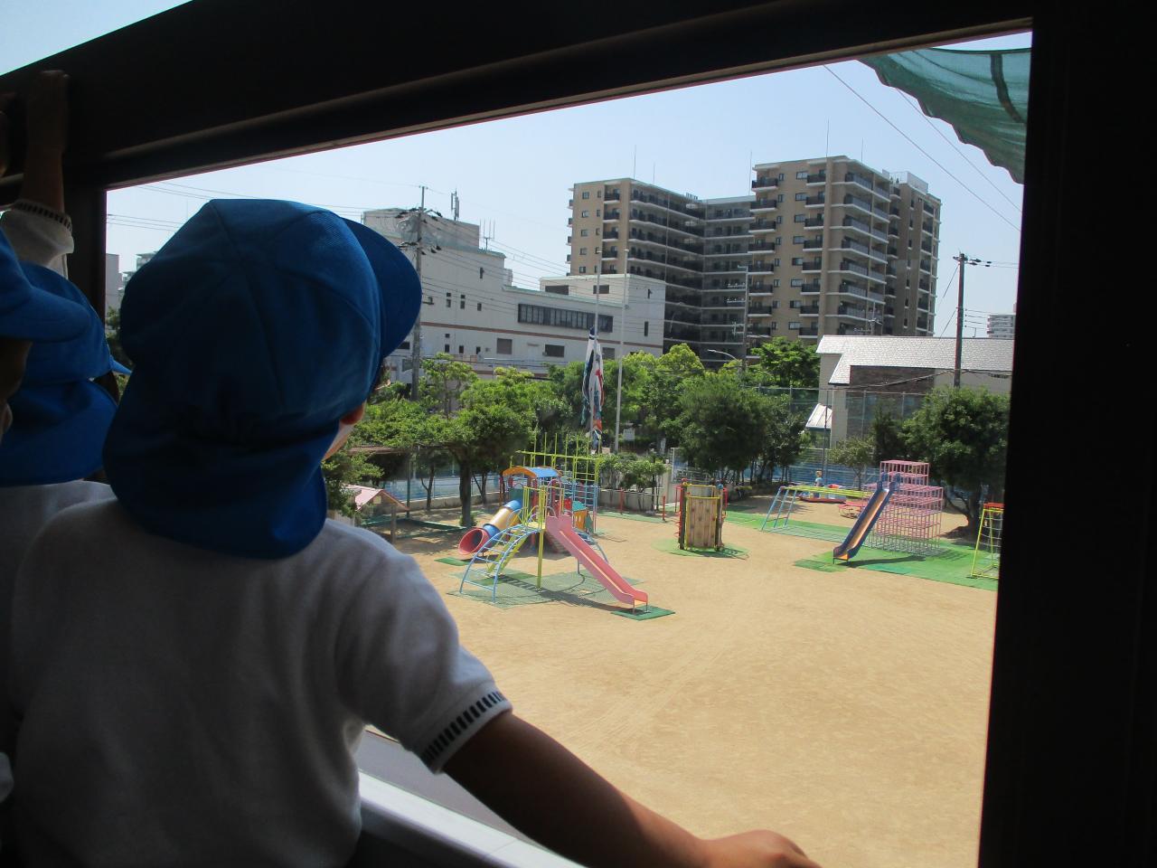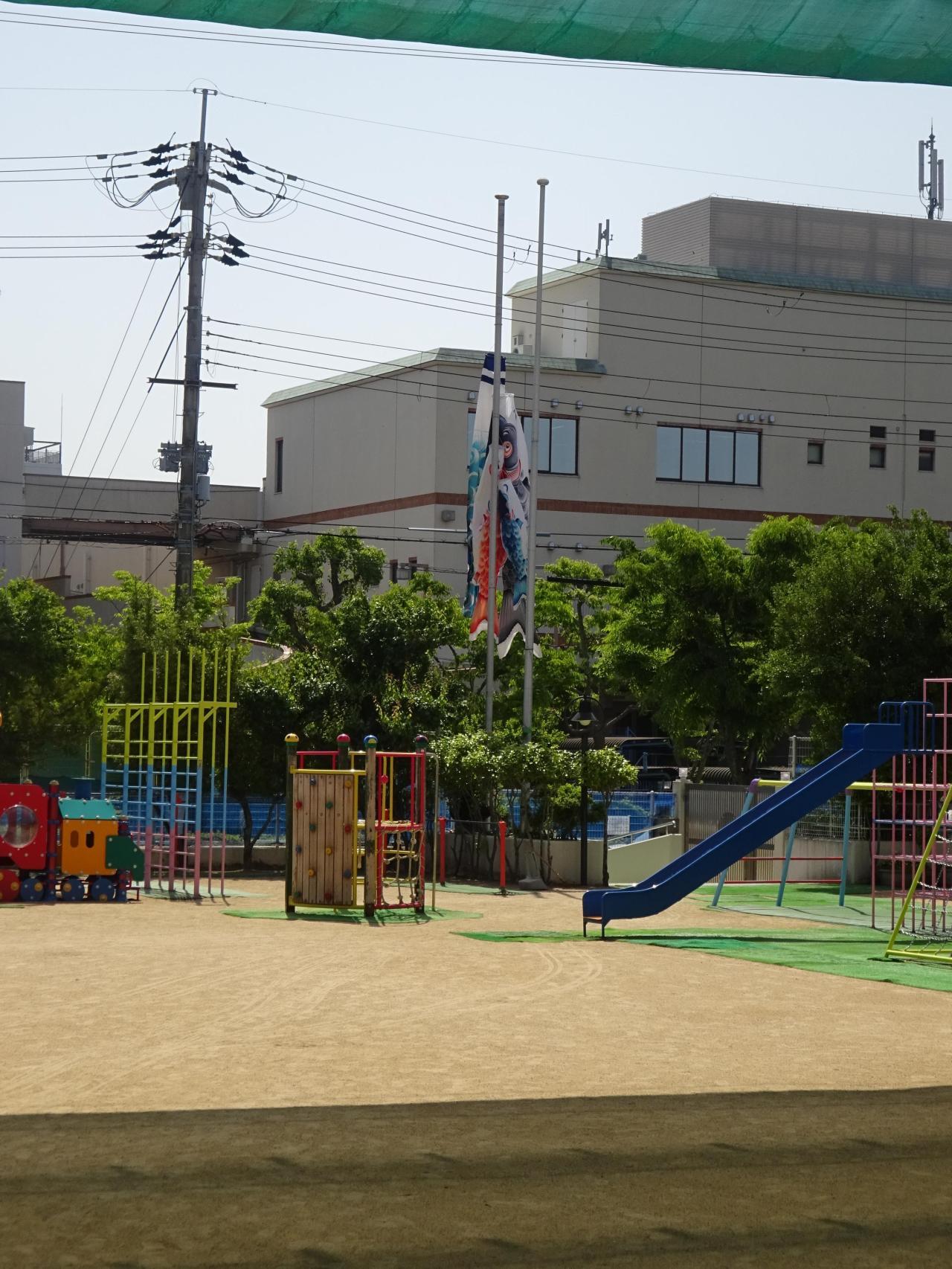 年長さんは、幼稚園のこいのぼりを見るのも最後でした。