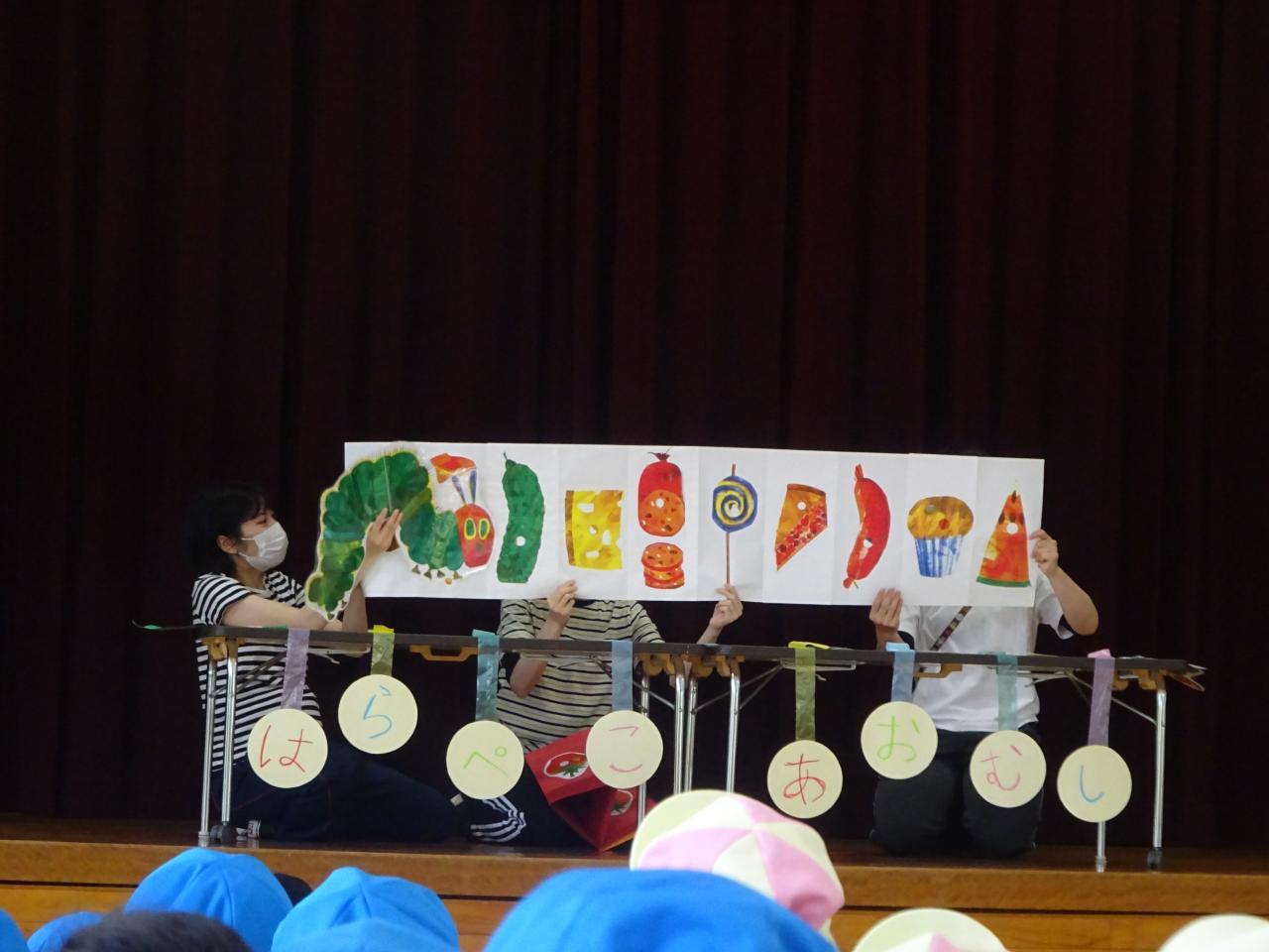 最後には、みんな大好き「はらぺこあおむし」のペープサート✨