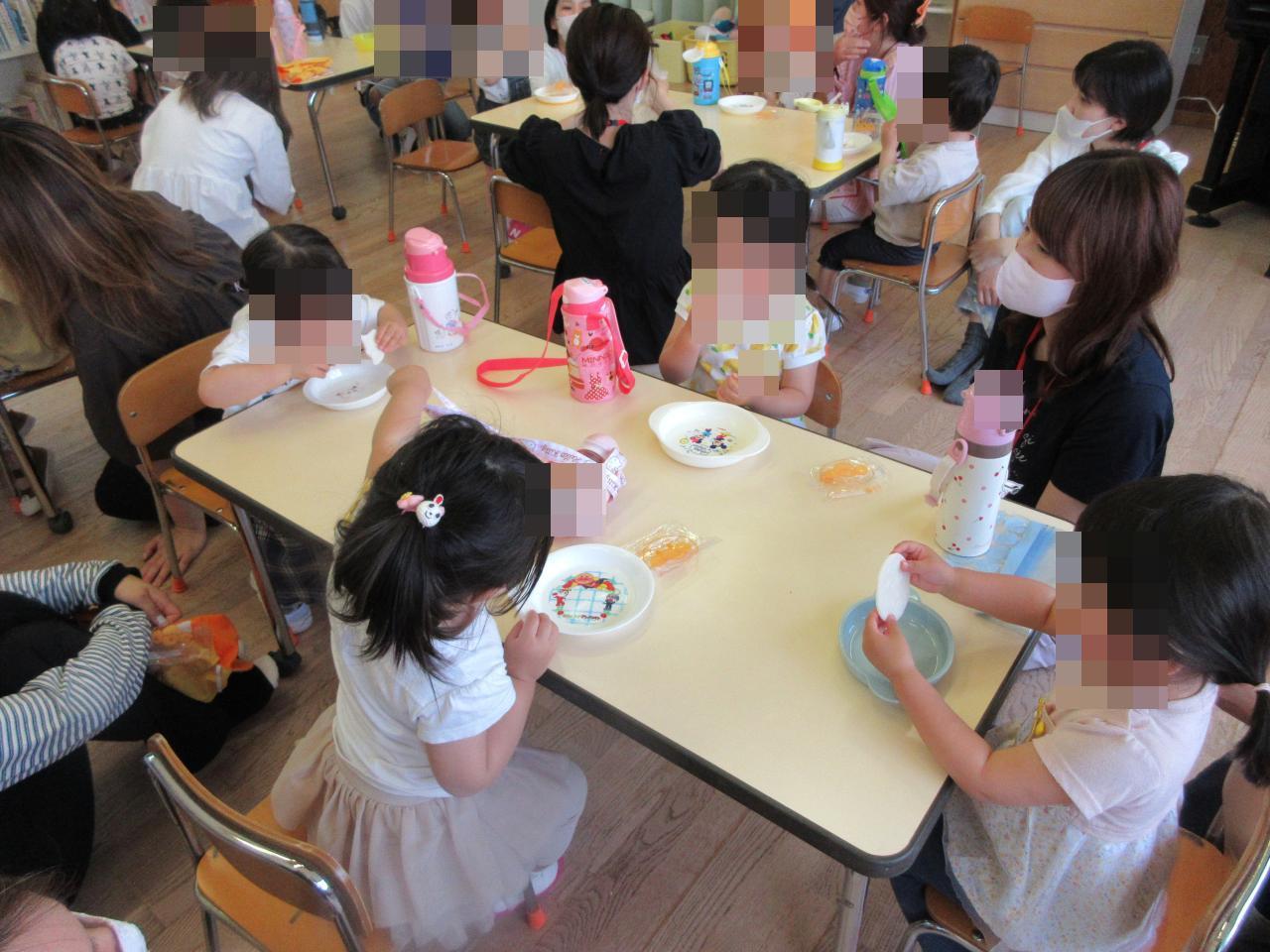 保育室に戻ったあとは誕生児のお友だちにインタビューをしたり、おいしいおやつをみんなで頂いたりと過ごしています🌸