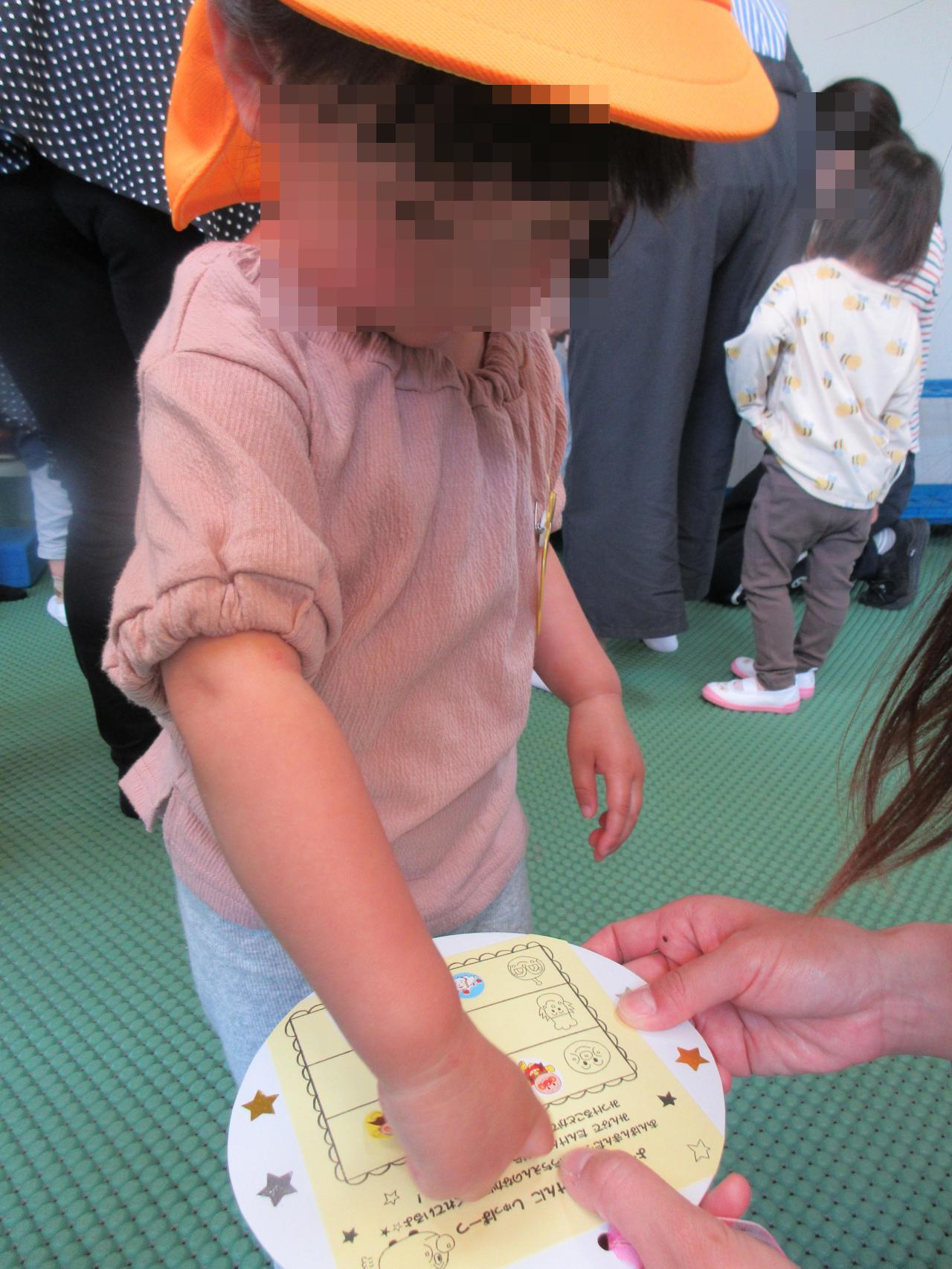 自分のカードにシールを上手に貼って、大ホールでは体操をしたり、図書室で滑り台を滑ったり、大きな絵本を見たりと探検を楽しむことができました🙌