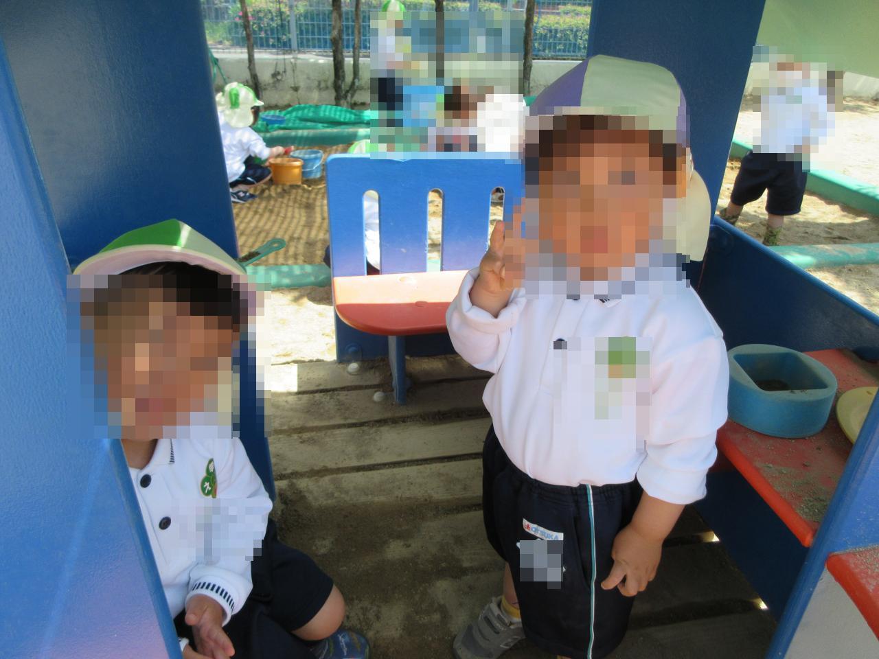 午後からは戸外遊びを行い、友だちと一緒に遊んだり、様々な遊具を楽しんだりと