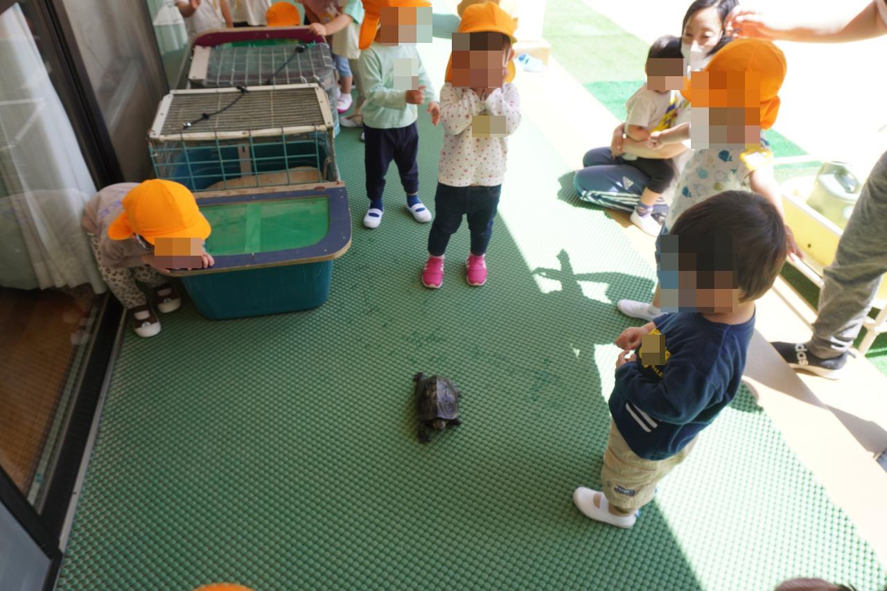 24日(水)には、園内をお散歩し、かめさんに会いに行きました🐢