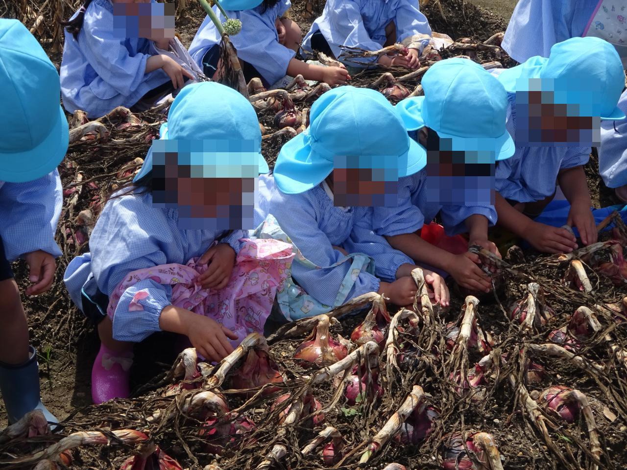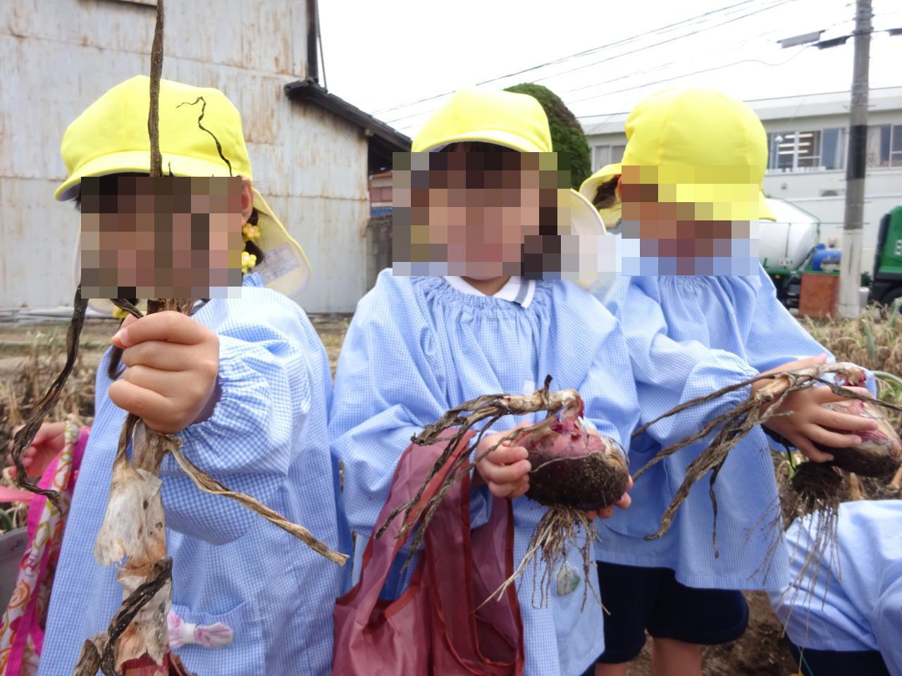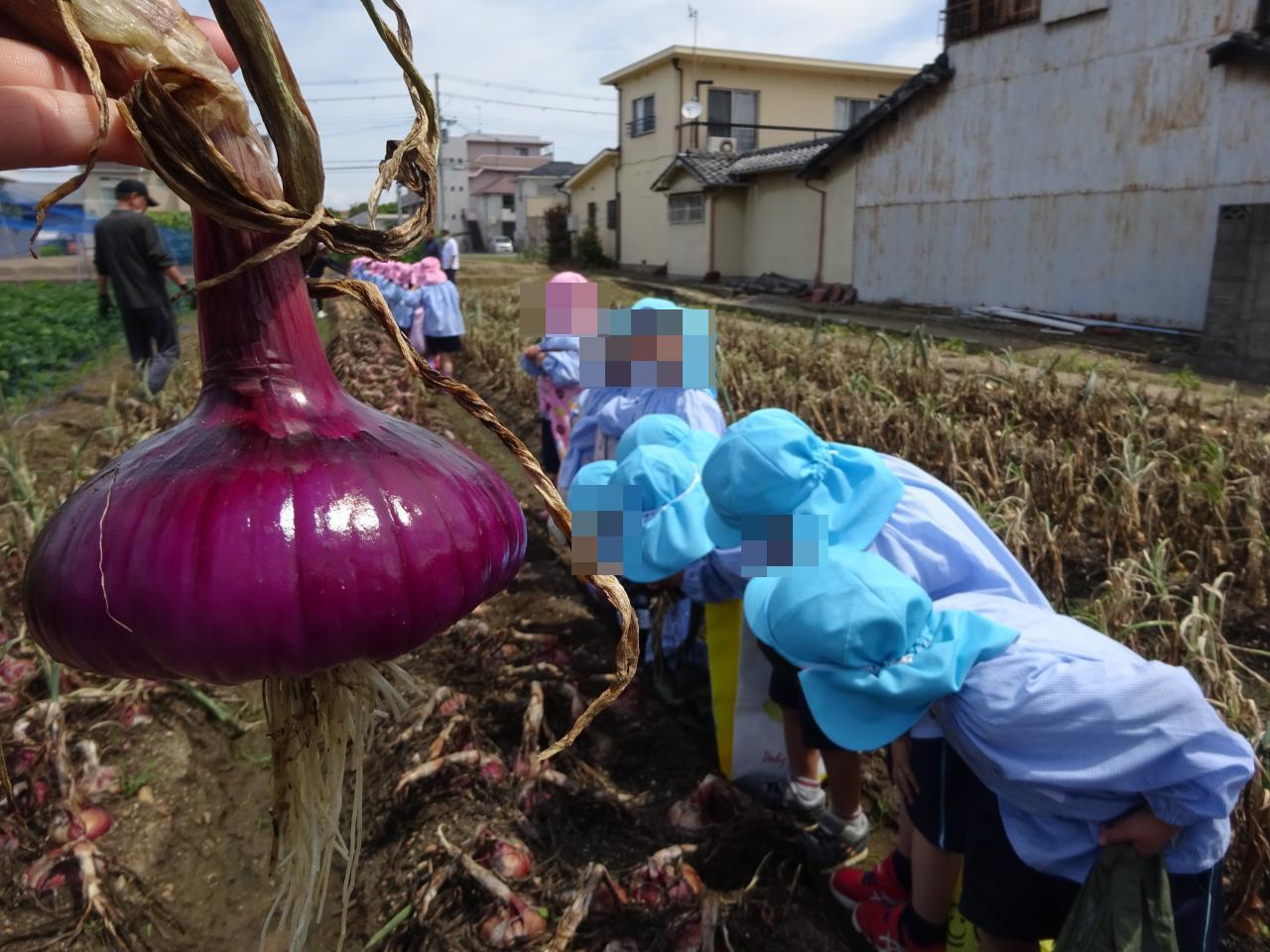 赤色と白色の玉ねぎがあり、その色の違いに興味津々の子どもたちでした😆