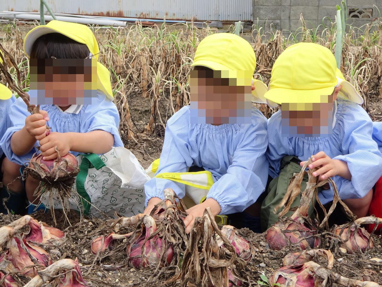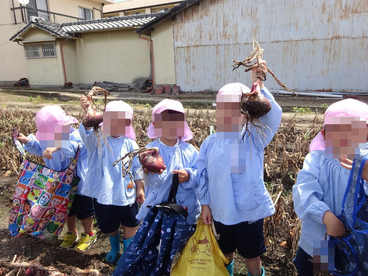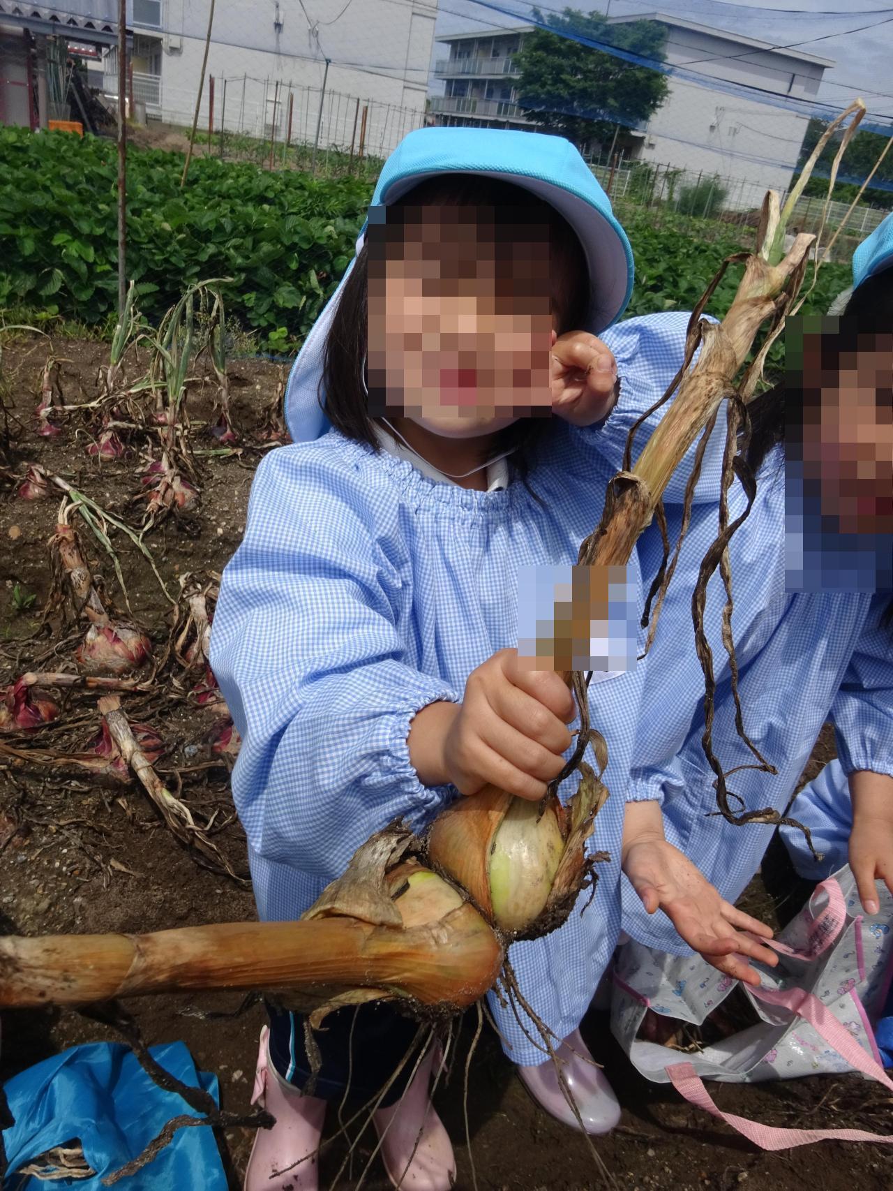 赤色と白色の玉ねぎがあり、その色の違いに興味津々の子どもたちでした😆