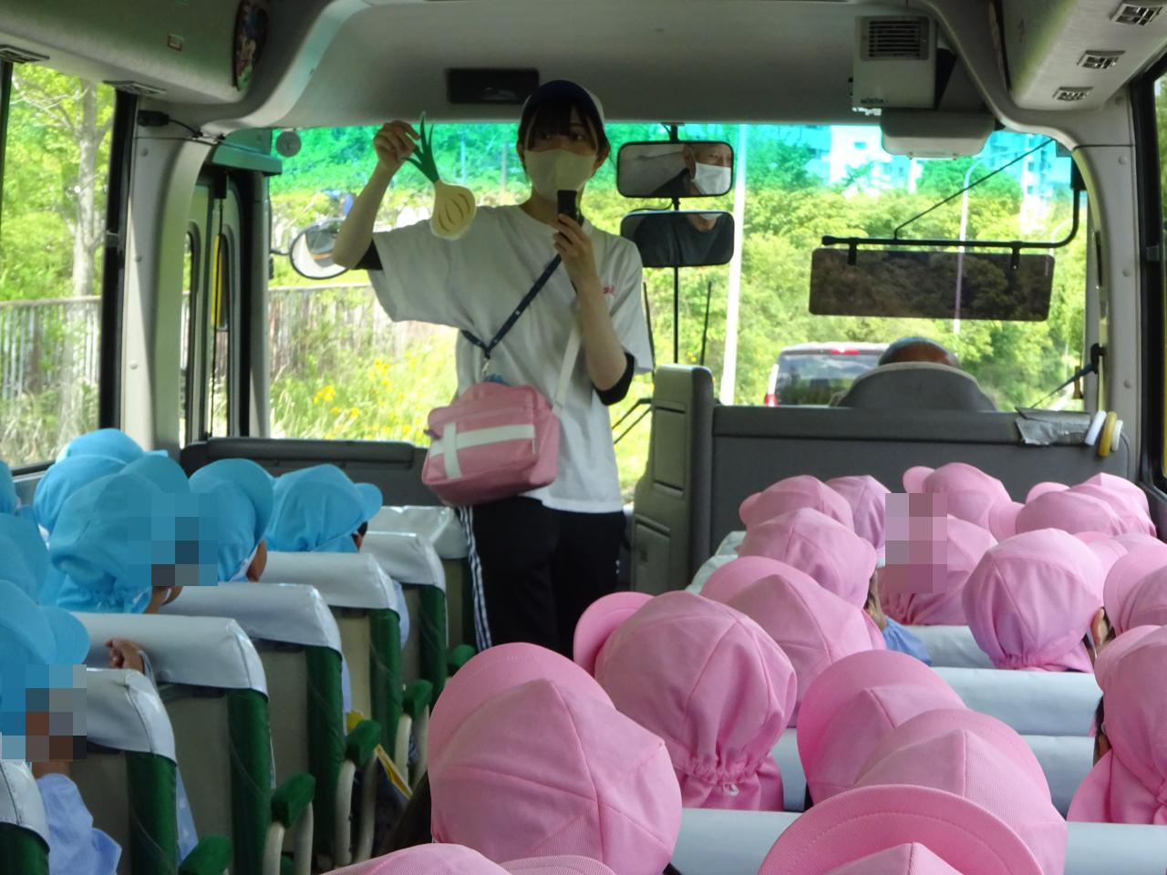 バスの中では収穫方法を教えてもらい、みんなで練習をしました🙌