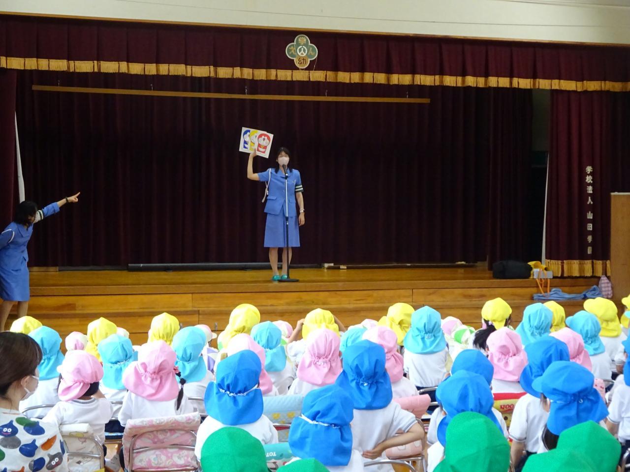 今日は、神戸西警察の方に来園して頂き、「交通安全教室」に全学年で参加しました🚗